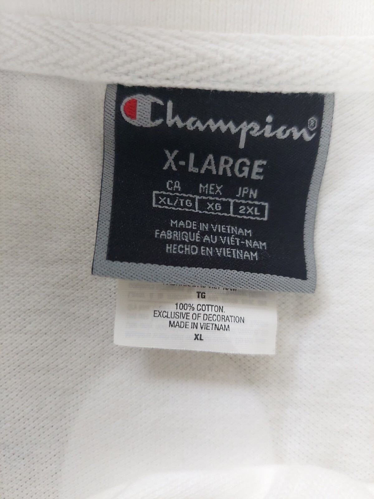 Champion White Short Sleeve Big C Logo Polo Shirt Men's Size XL
