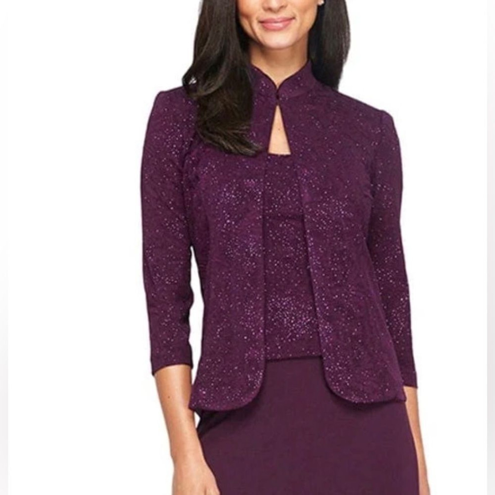 как выглядит Alex Evenings Embellished 3/4 Sleeve Square Neck Jacquard ONE PIECE Jacket фото
