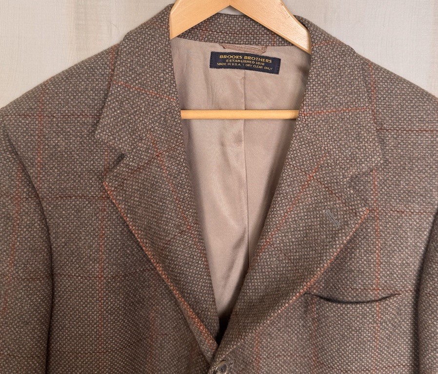 VTG Brooks Brothers Camel Hair Blazer Brown Windowpane Plaid 46R Brown USA Union