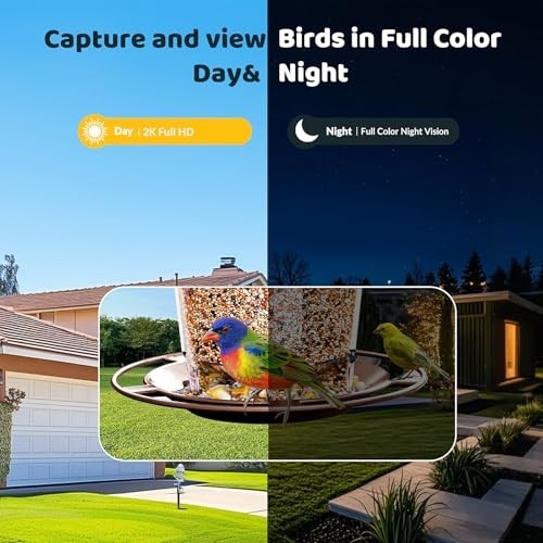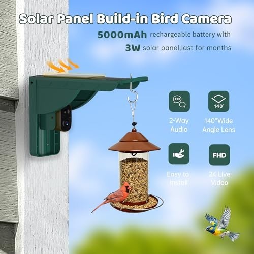 Solar Bird Watching Camera with AI Identification, 2K HD Live View Alerts - Pe