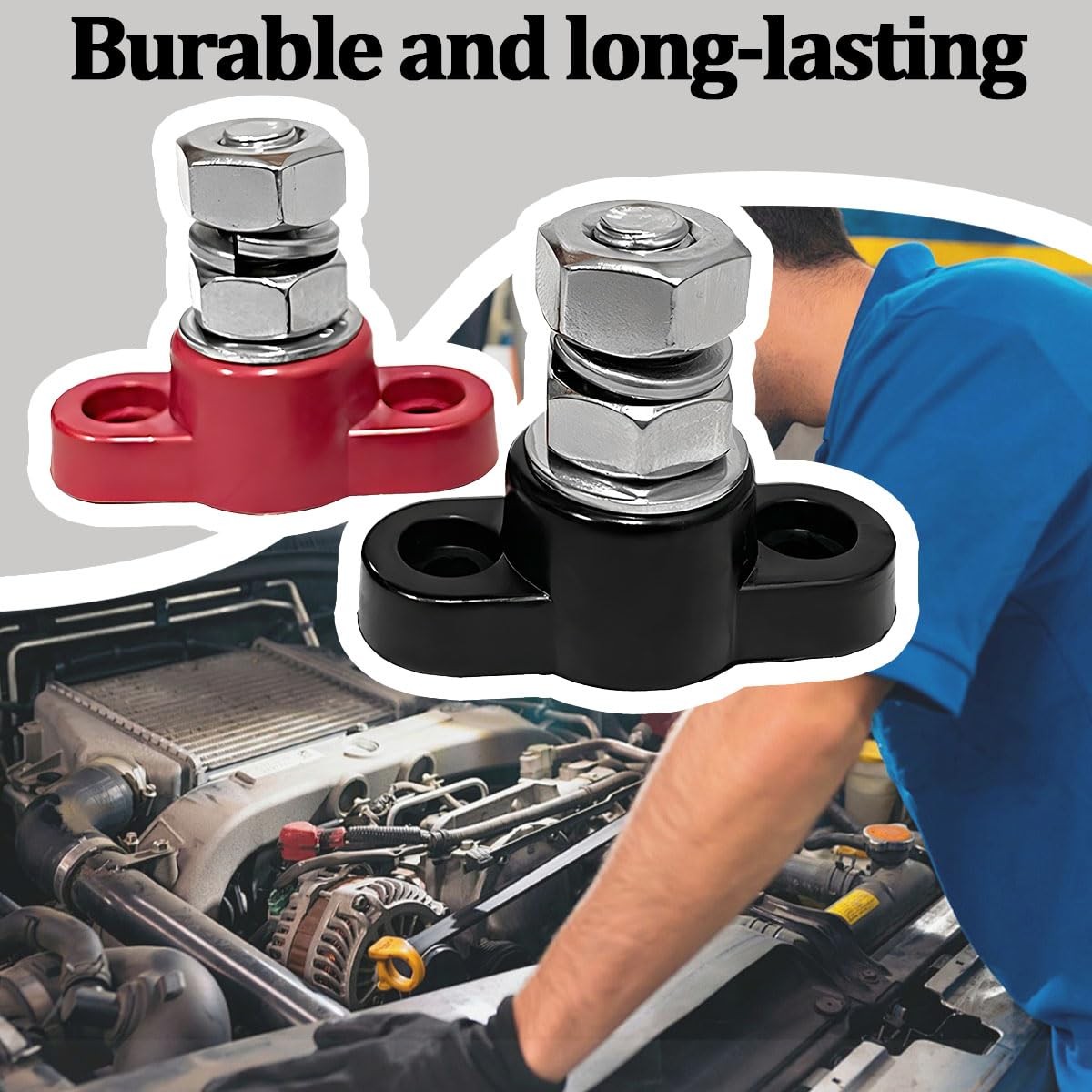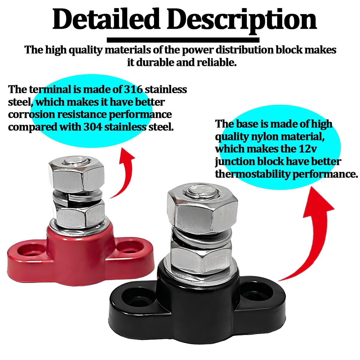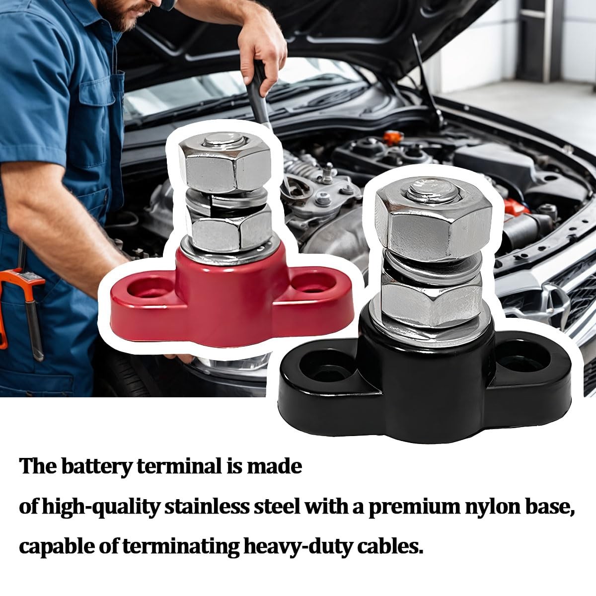 SWPHRT 2PCS Car Single Stud Battery Junction Post Block, 12V 3/8 HeavyDuty I...