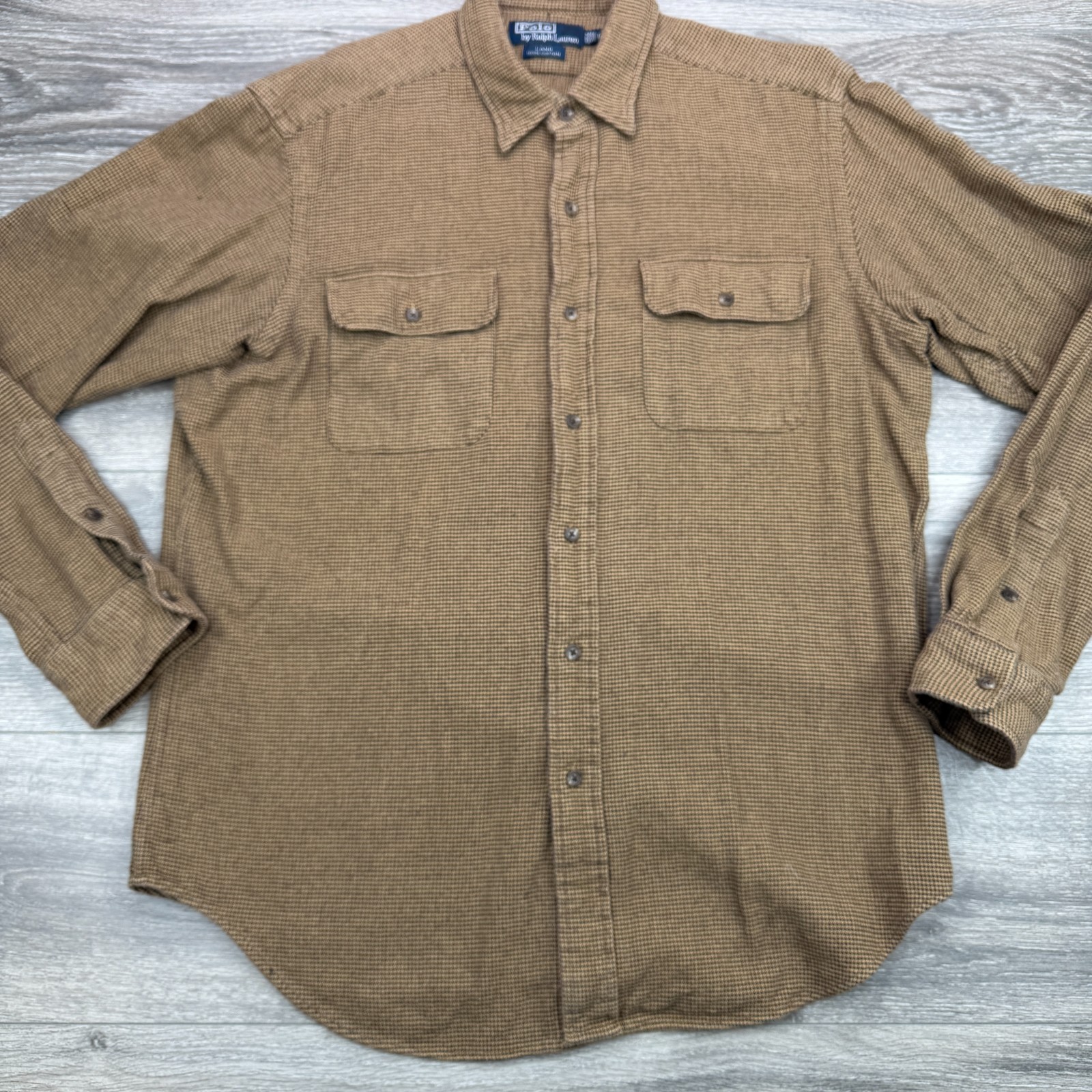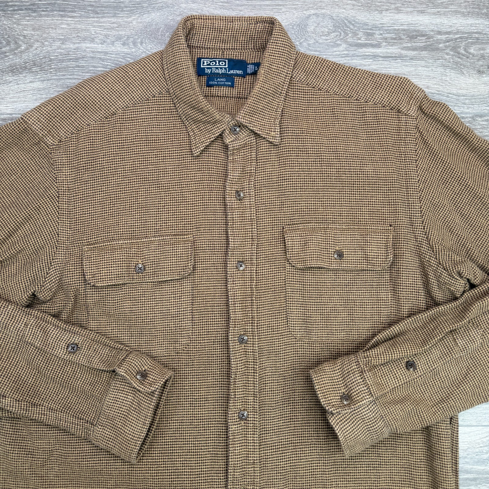 Polo Ralph Lauren Shirt Mens Large Brown Lang Houndstooth Double Pocket Flannel