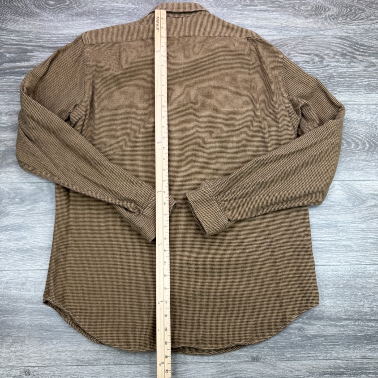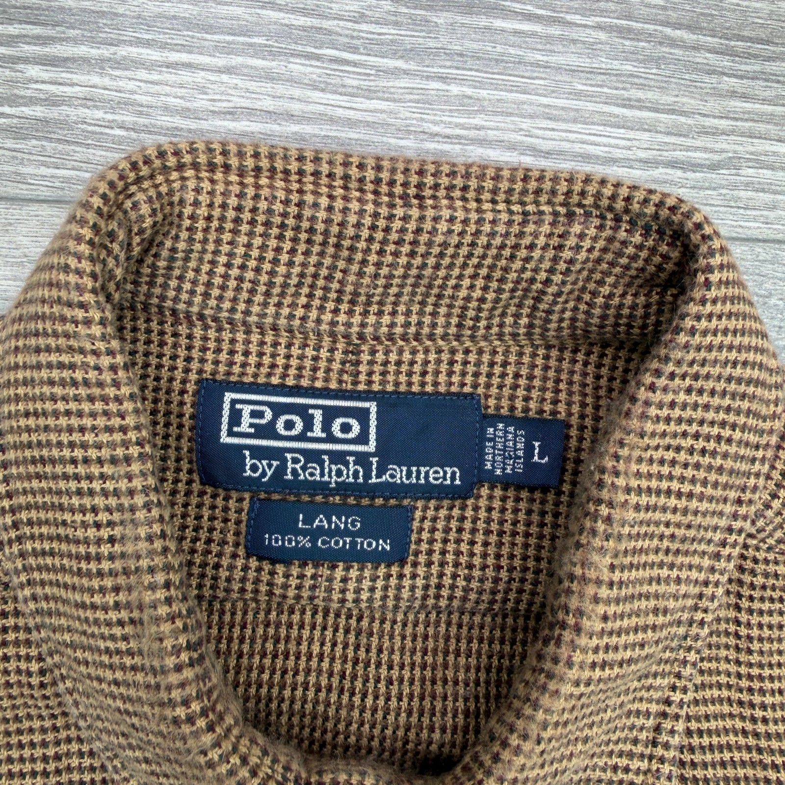 как выглядит Polo Ralph Lauren Shirt Mens Large Brown Lang Houndstooth Double Pocket Flannel фото