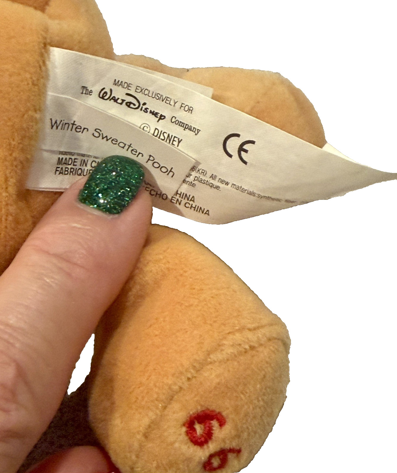 • 1999 Disney Store Winnie the Pooh Winter Sweater Mini Bean Bag 8" Plush w Tags
