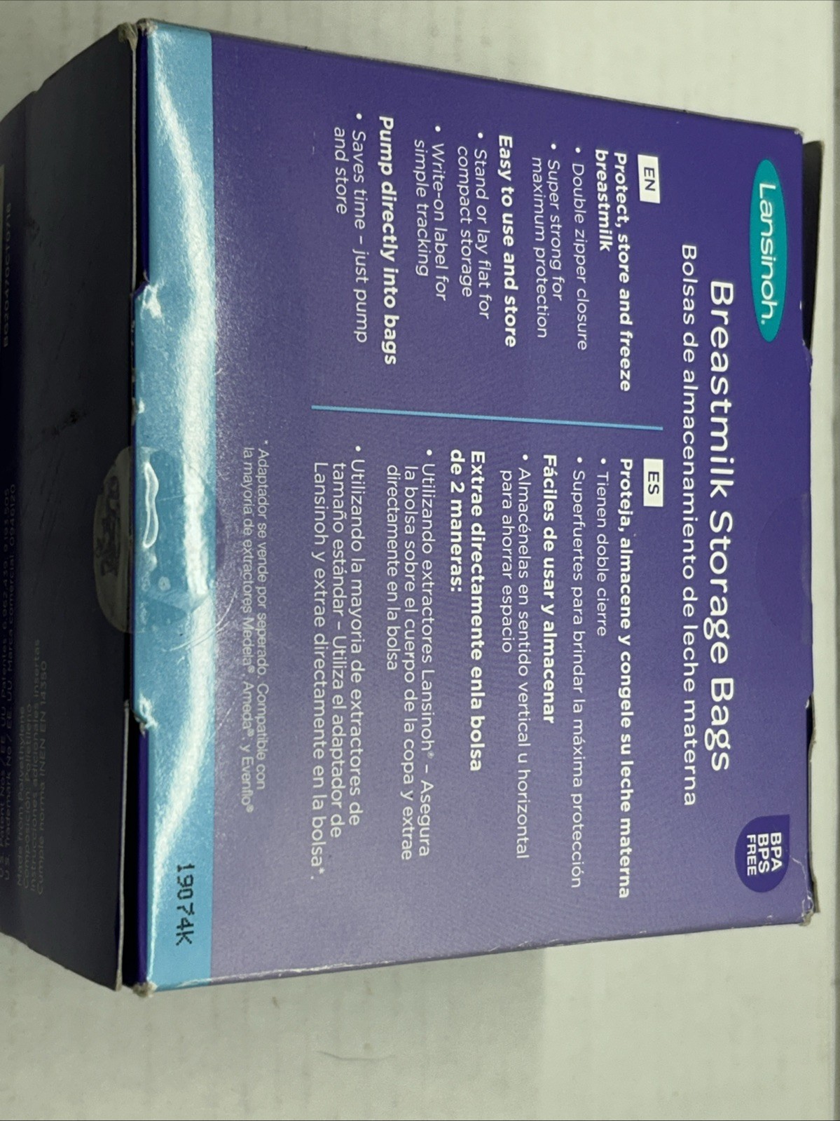 Lansinoh Breastmilk Breast Pump Storage Bag - 20470 - 100 count - NEW