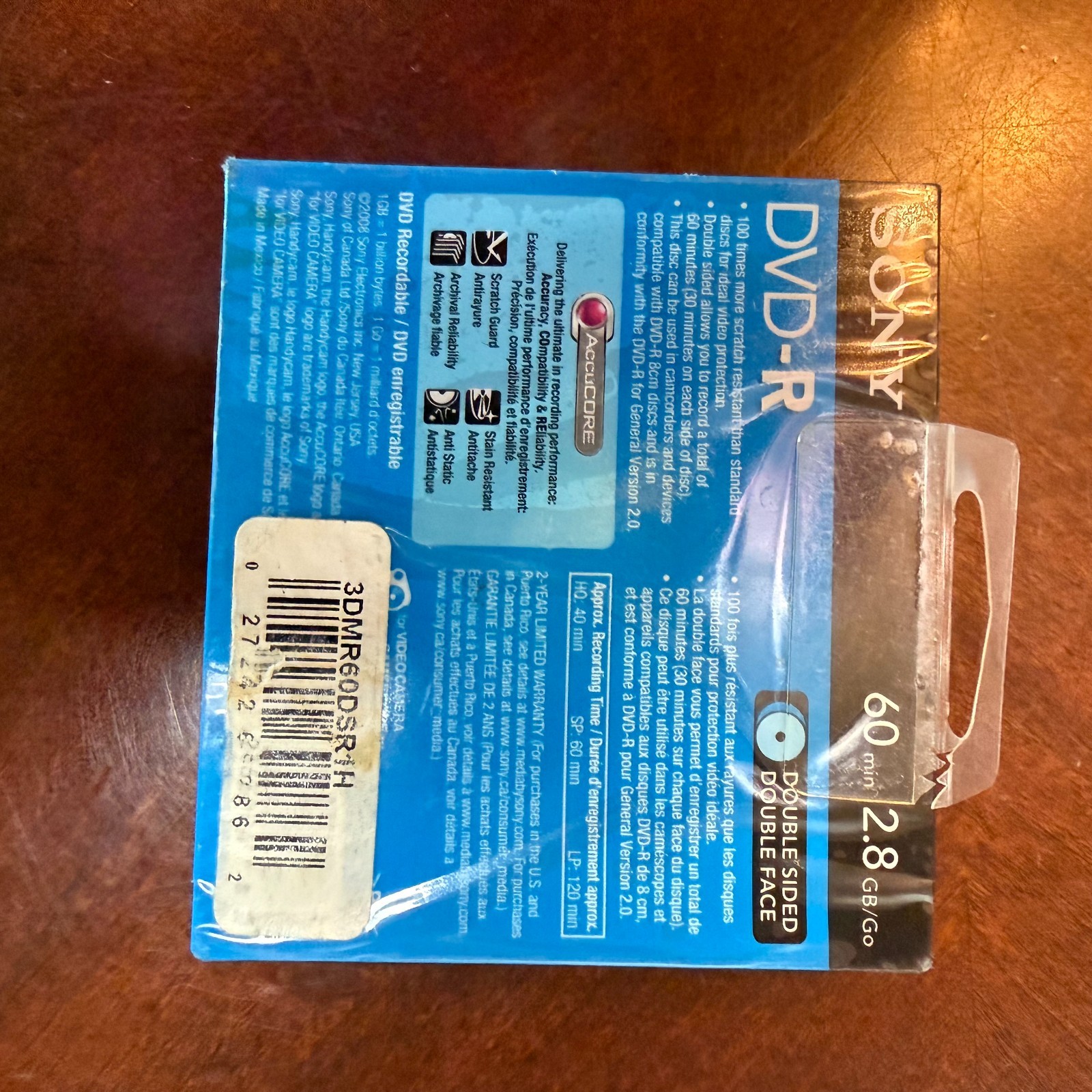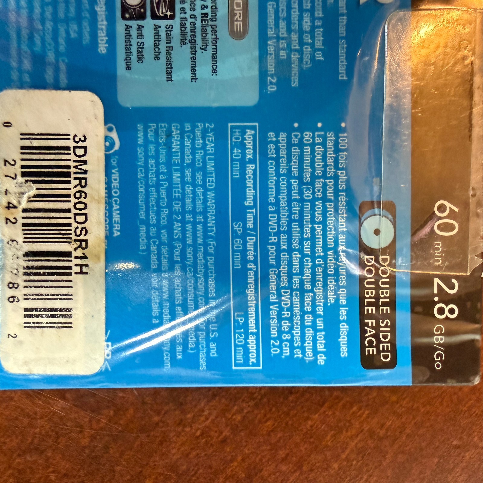 1 Sony Handycam DVD-R Blank Mini Disc 60 min 2.8 GB Double Sided NEW SEALED