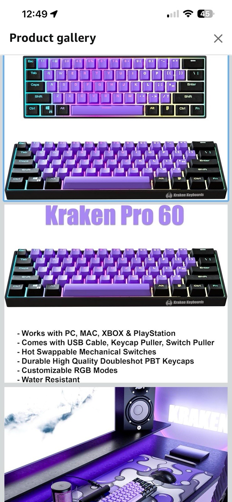 как выглядит Kraken Keyboards Pro Keyboard 60 Gaming Keyboard Mechanical - Black Purple фото