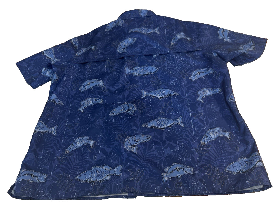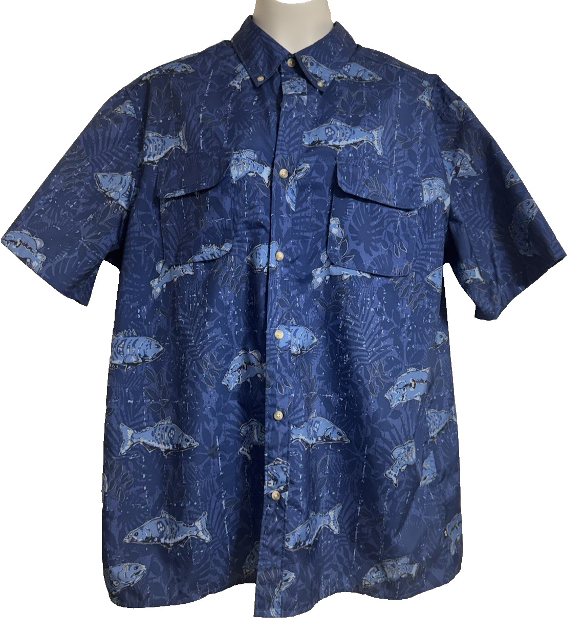 Chaps Men s Button Up Short Sleeve Size XL Fish Shirt Pockets Vented Back 0243