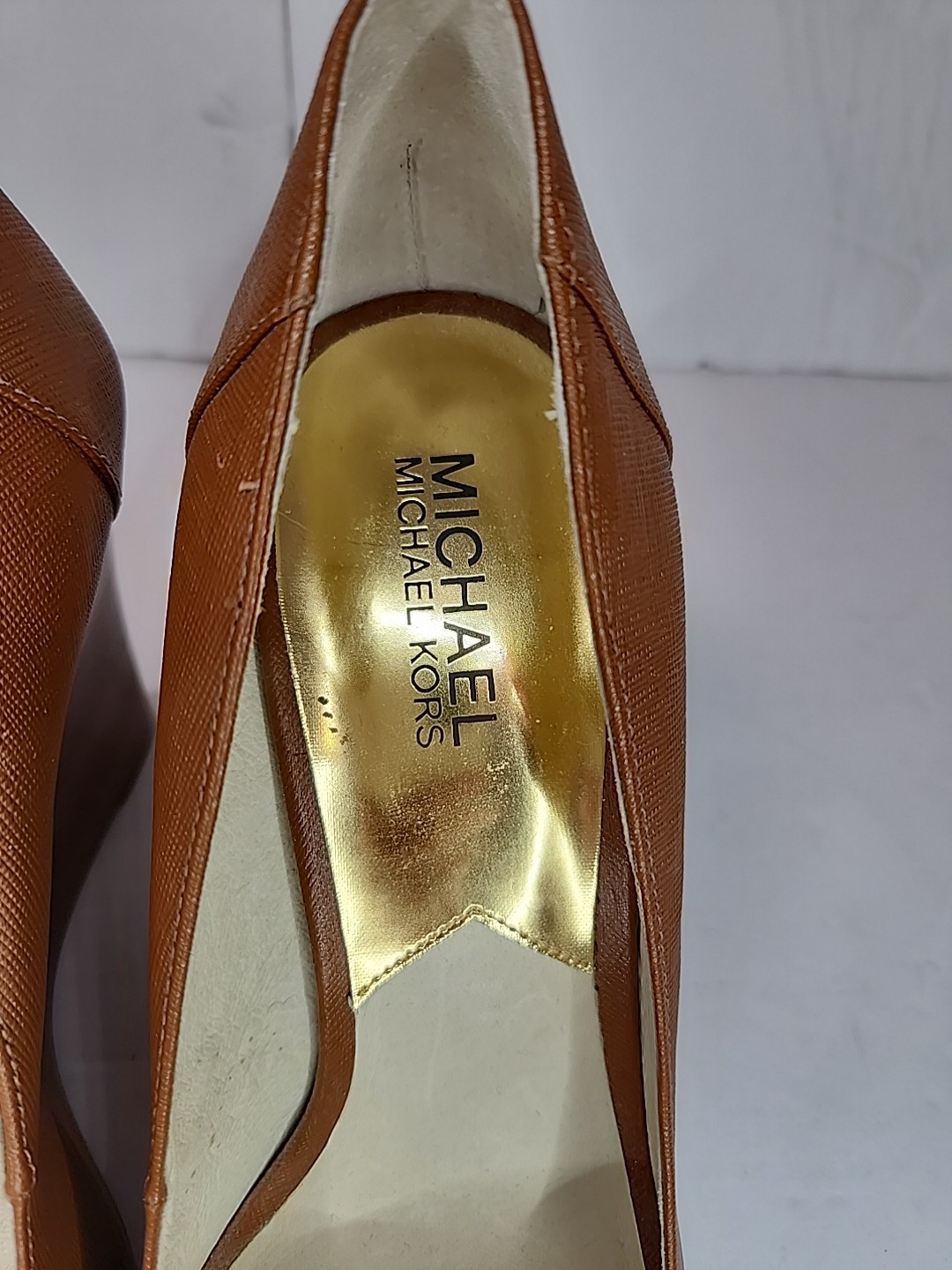 Michael Kors Hamilton Wedge Heel Women's Brown Leather 10 M Peep Toe Shoe Lock