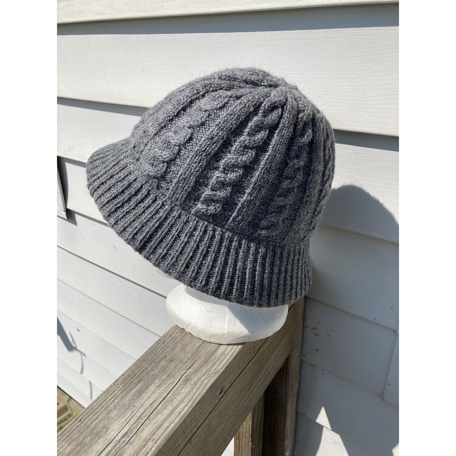 как выглядит Vintage Aris Grey Cable Knit Bucket Cap Hat Thick Heavy фото