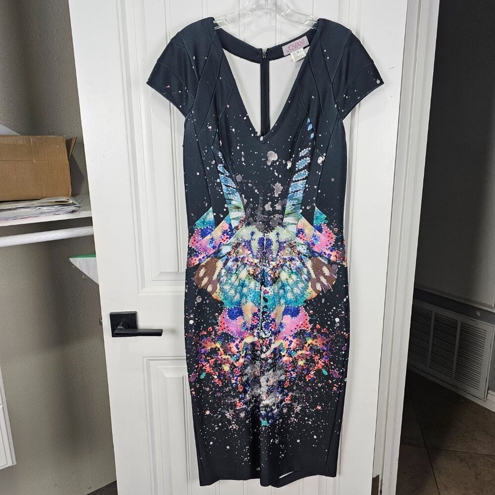 как выглядит JOVANI Evening Gown Multicolor Rhinestone Studded Midi Dress Size 14 фото