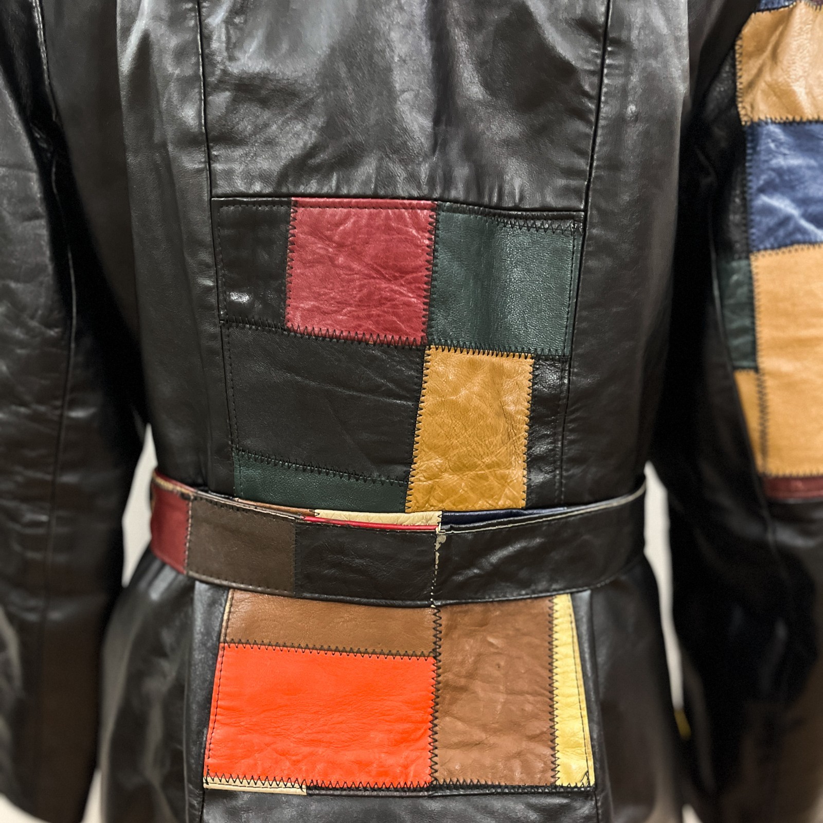 Vintage 1970s Patchwork Leather Belted Trench Coat Boho Hippie Statement Jacket