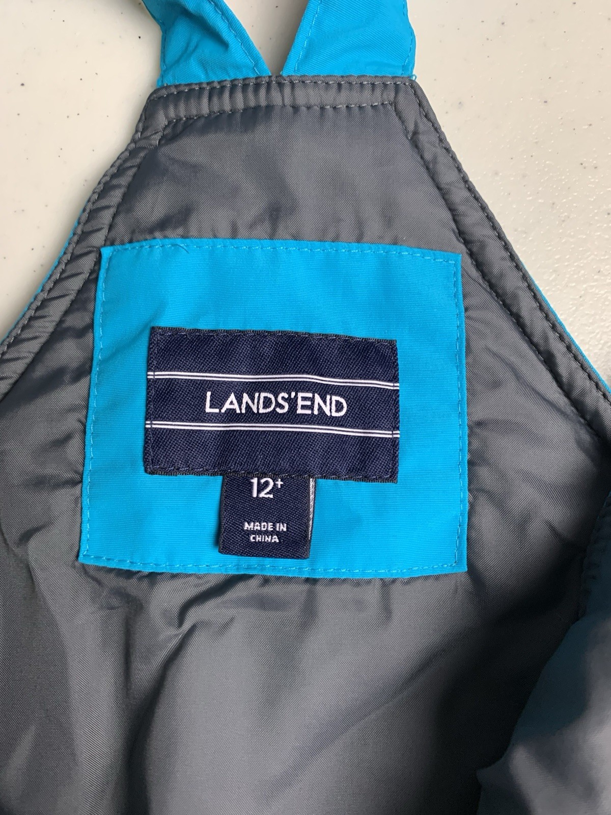 LANDS END Youth Girls Squall Insulated Iron Knee Snow Bibs Blue Size 12