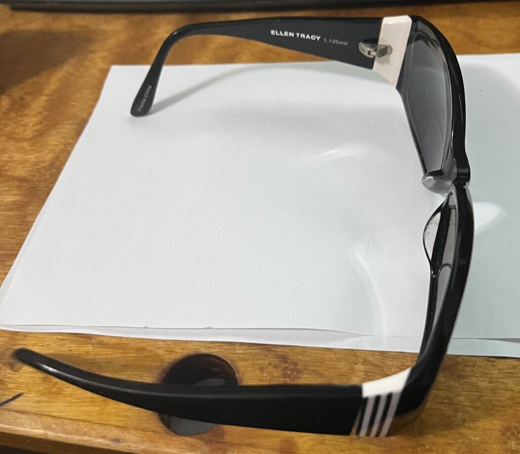 как выглядит Vintage Ellen Tracy Terra Black Oval Sunglasses w/case SOLD FOR FRAMES ONLY. фото