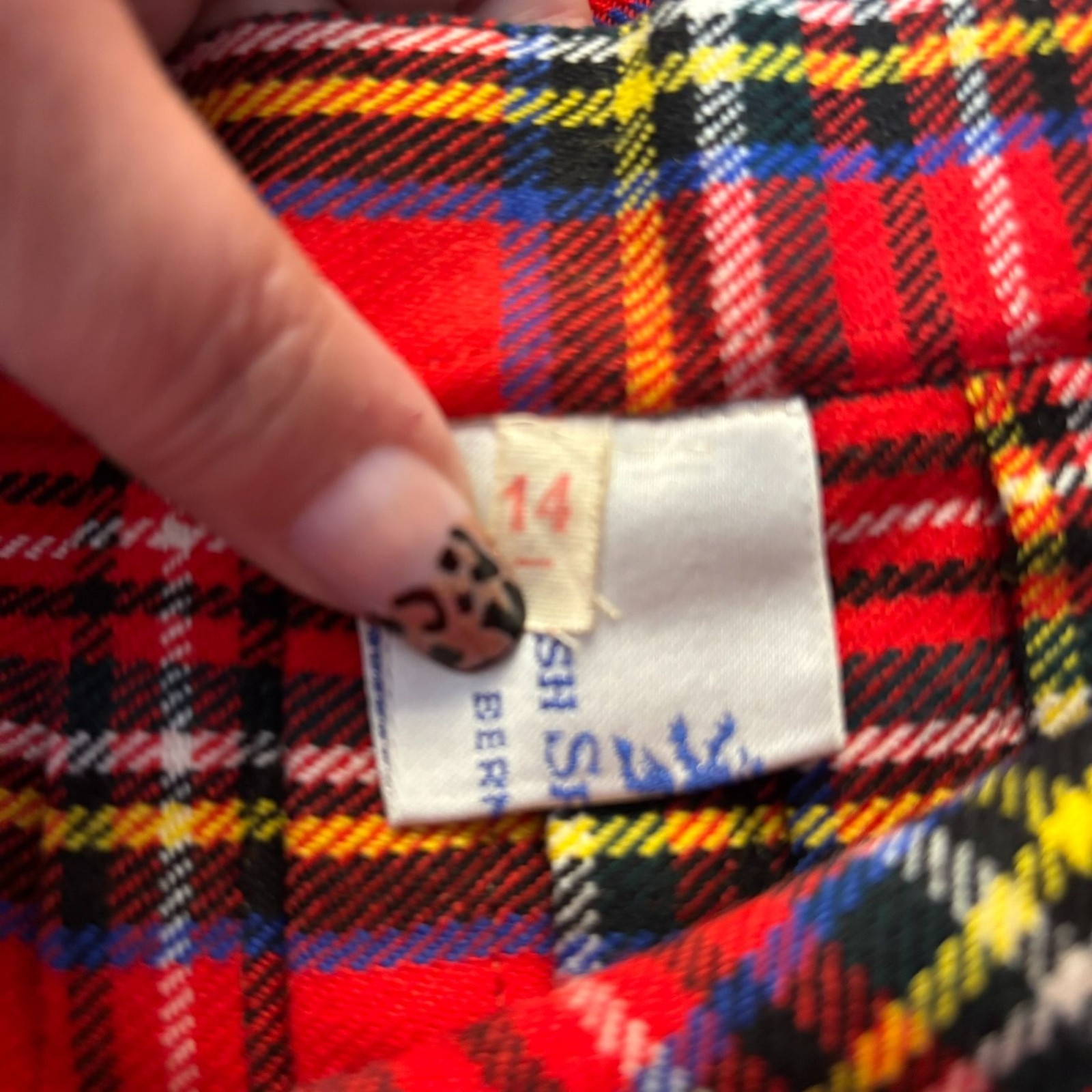 Wool Blend Pleated Kilt Skirt Adjustable Buckle Straps Med Red Tartan Plaid