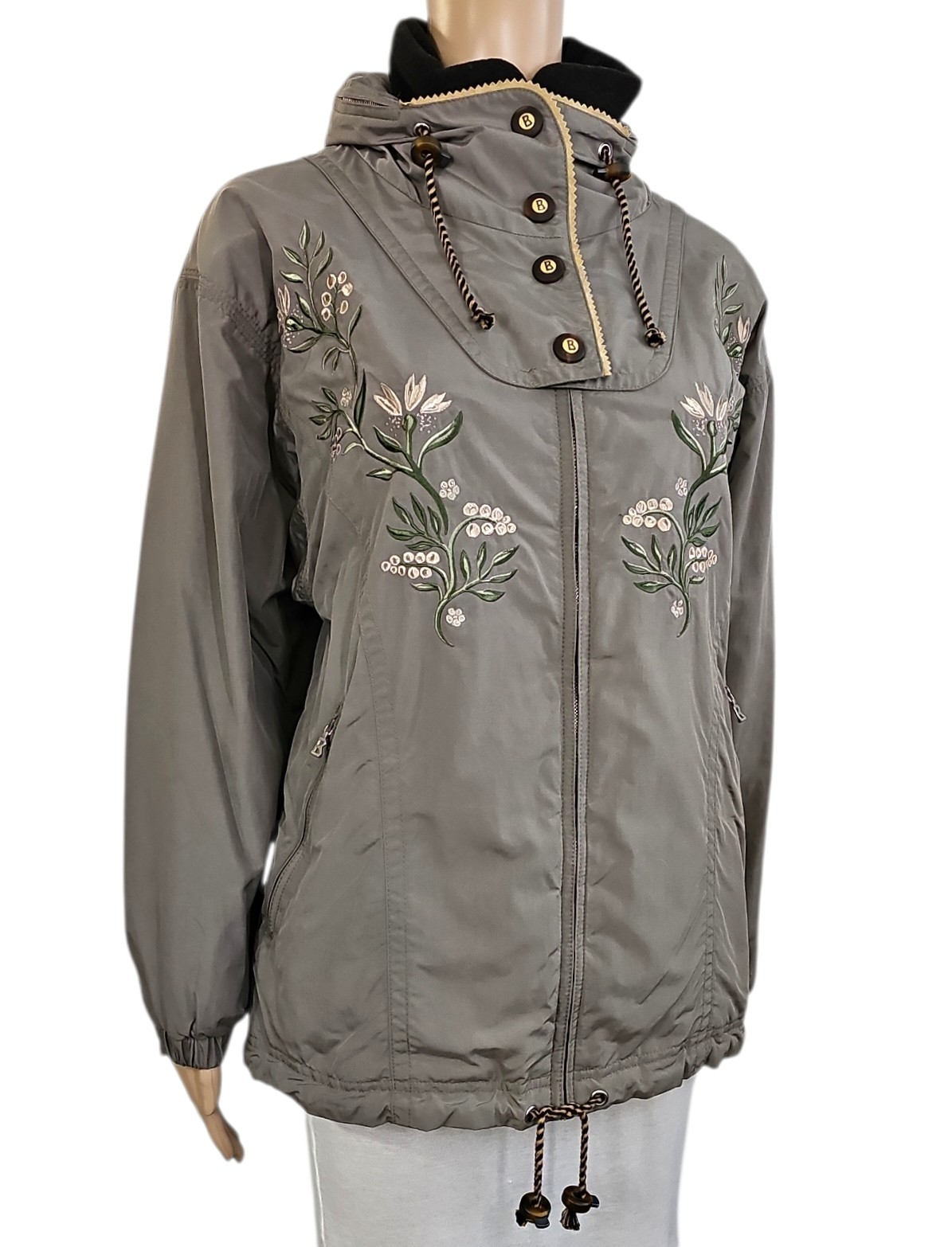 BOGNER Green Floral Embroidered Hidden Hood Insulated Winter Jacket 6