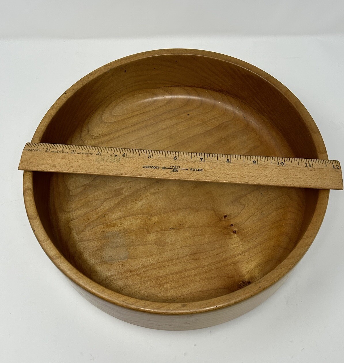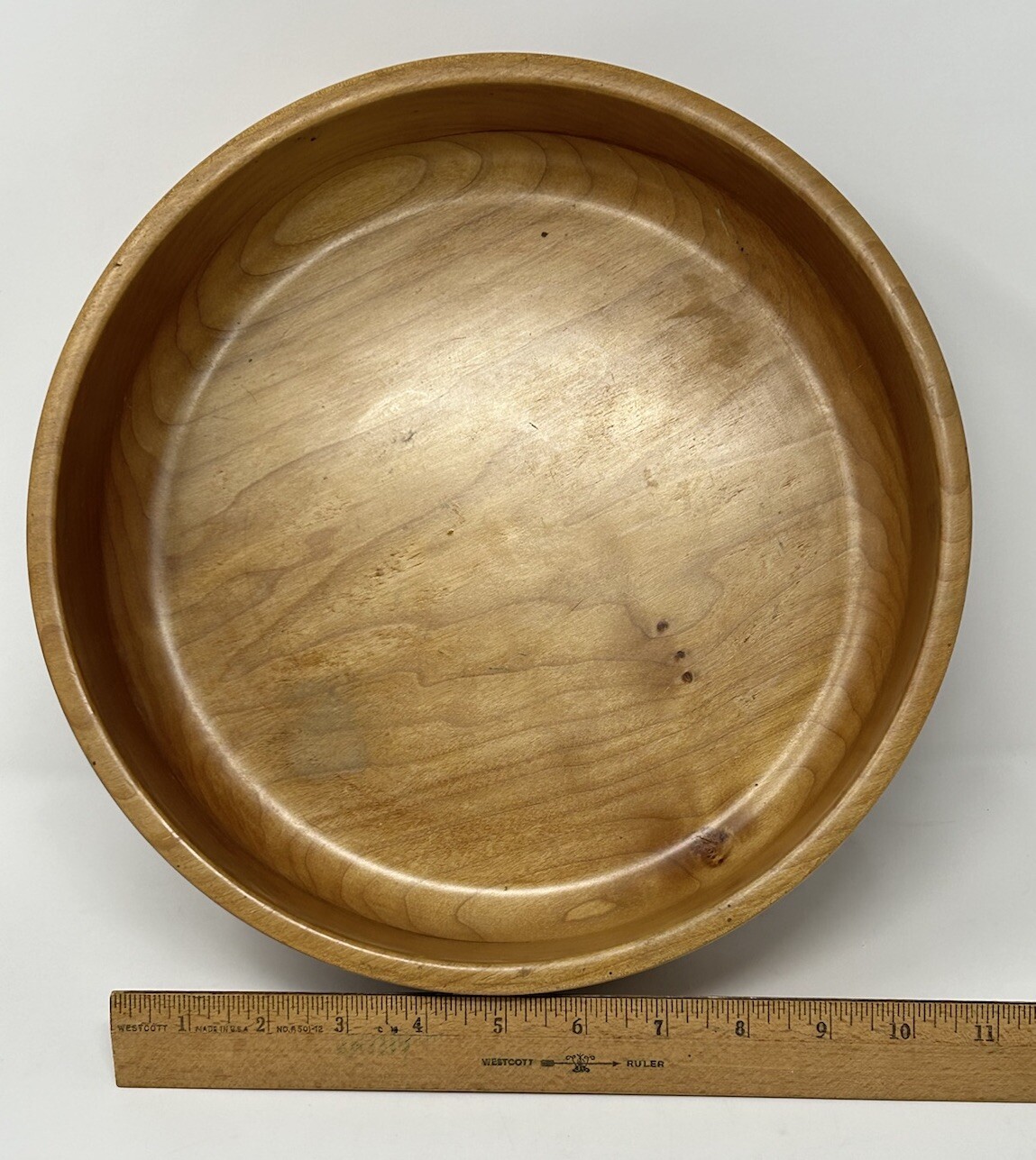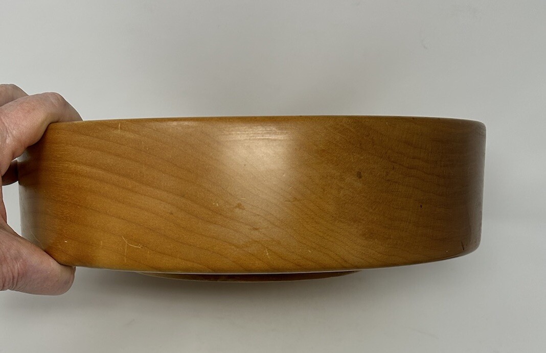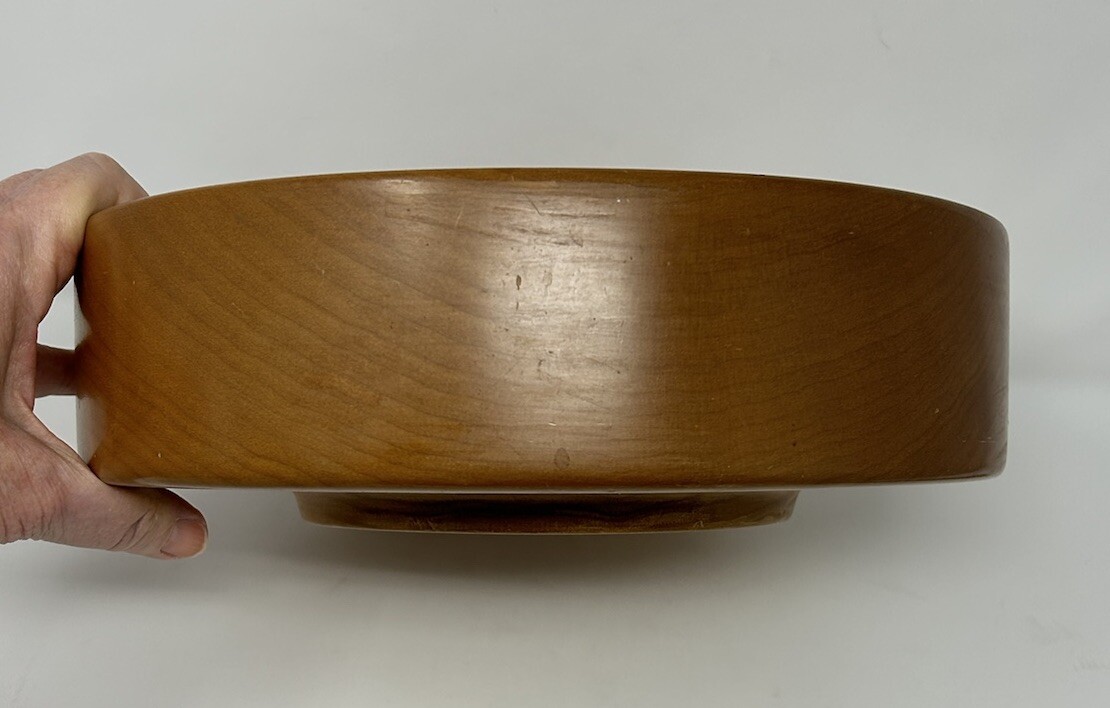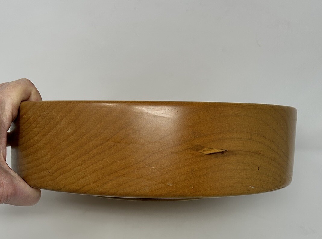 как выглядит Wooden Bowl 11.5" diam x 4" high x 3.5" deep light brown color Smooth finish VTG фото