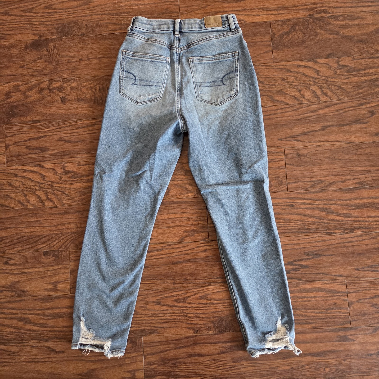 как выглядит American Eagle Curvy Mom Jeans Size 2 Distressed Stretch High Rise Retro 90s фото