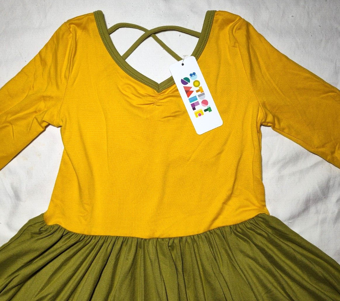 Dot Smile Girls 7 Solid Color Block Mustard Pear Soft Ballerina Twirl Dress NWT