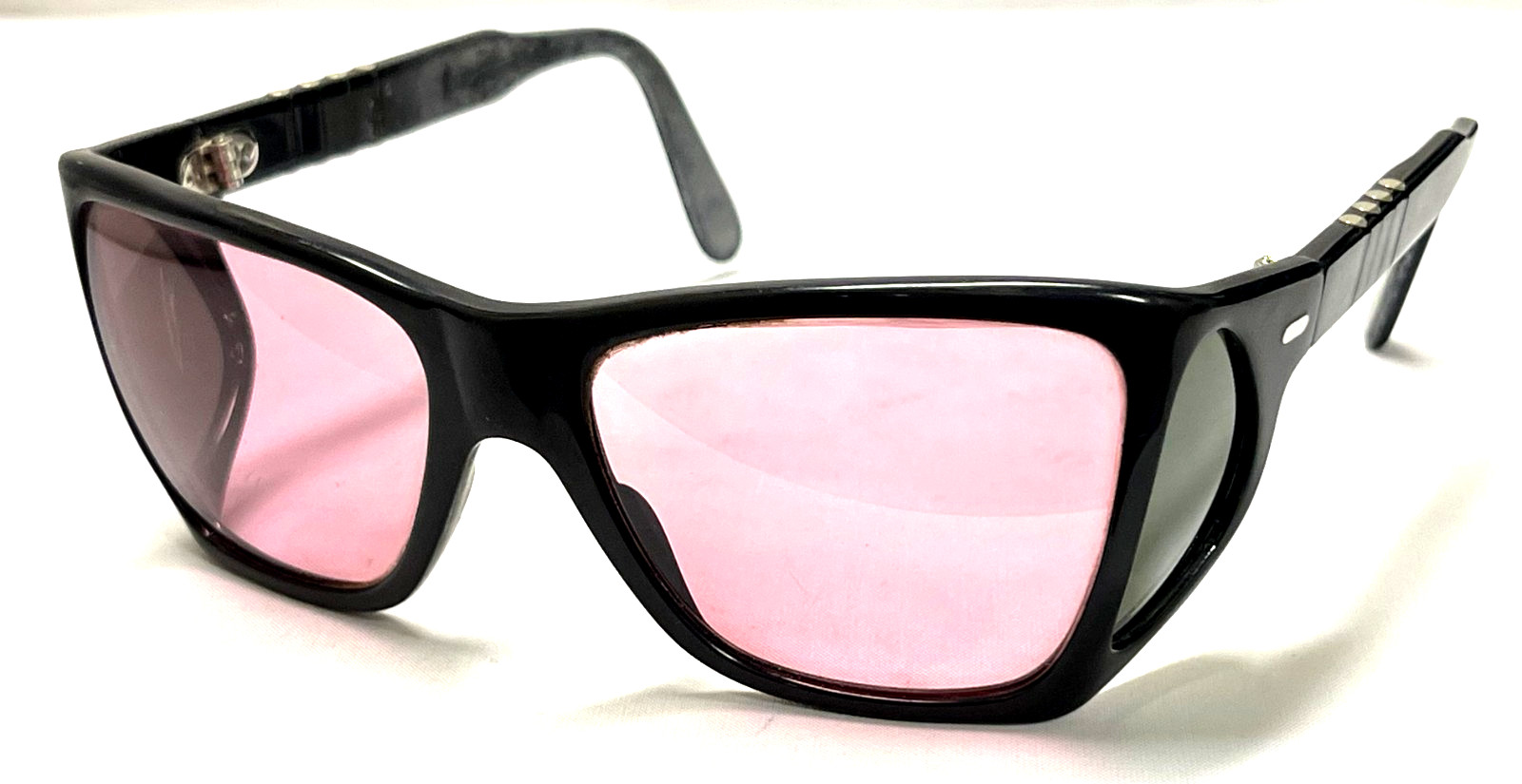 Vintage PERSOL RATTI 009 Black Plastic Shield Wrap Sunglasses Italy RARE
