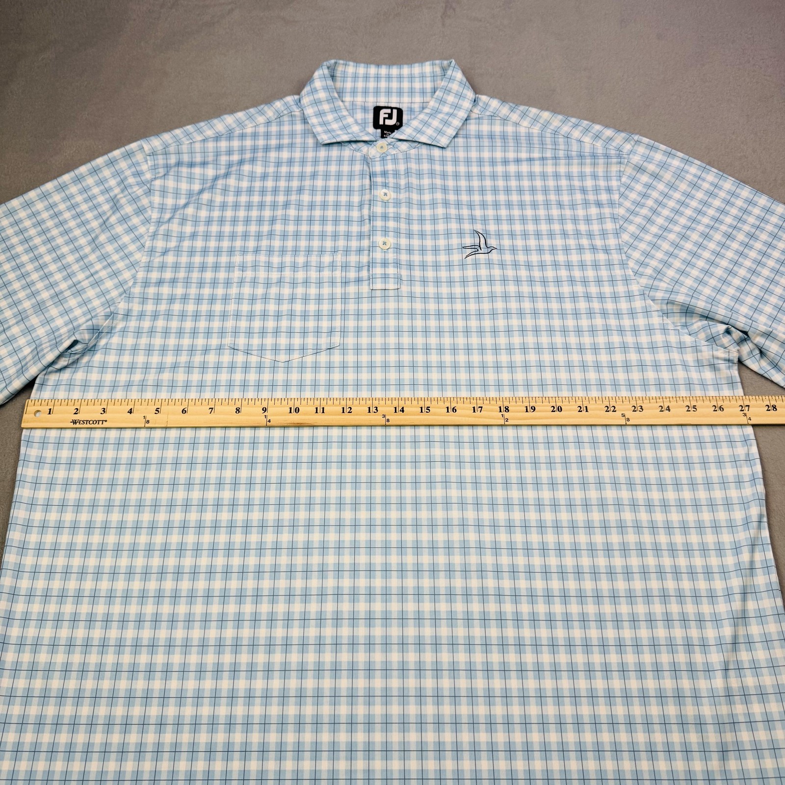 как выглядит FootJoy Polo Shirt Mens 2XL Blue Check Golf Stretch Performance Bird Logo фото