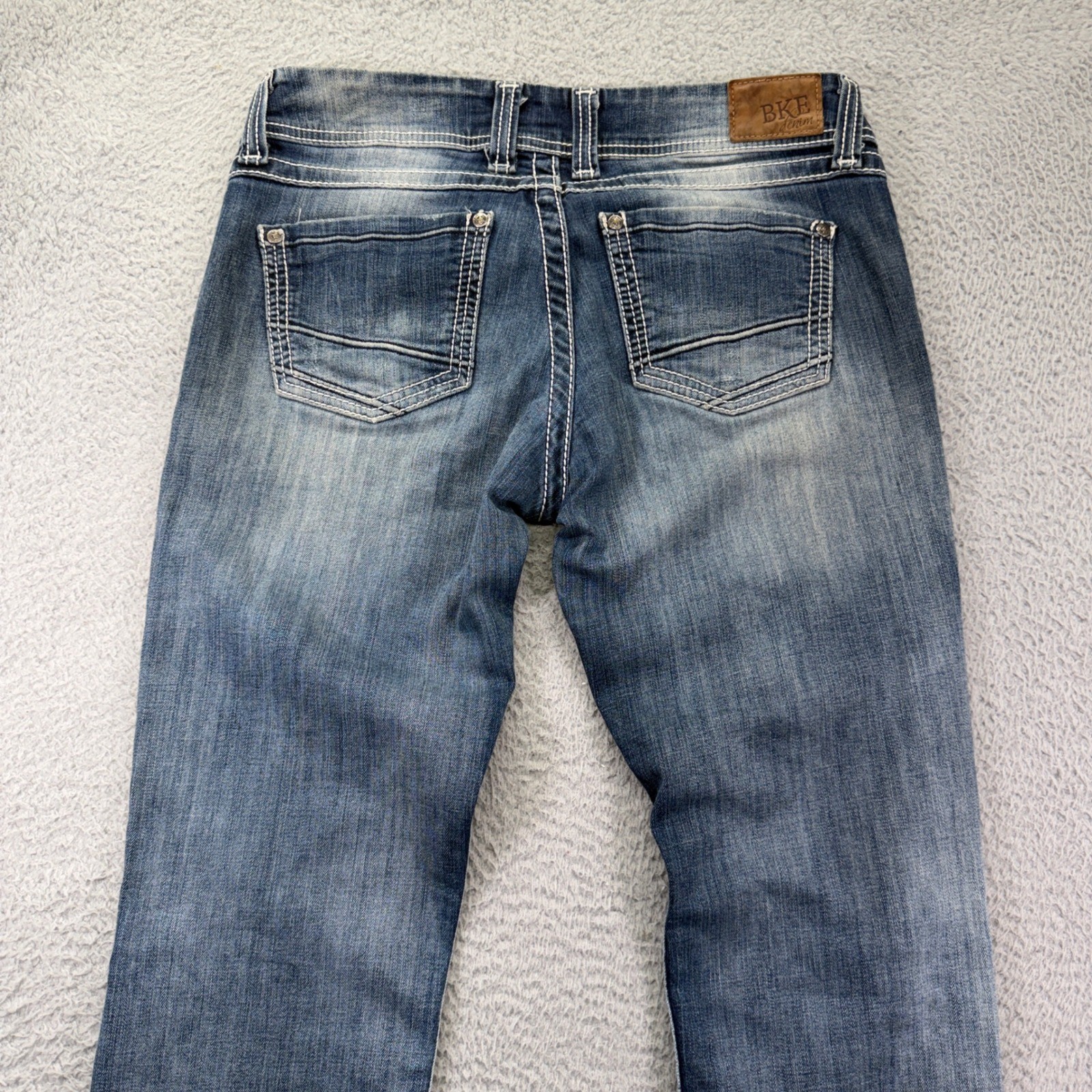 как выглядит BKE Sabrina Jeans Womens 30L Blue Bootcut Distressed Stretch Medium Wash Denim фото