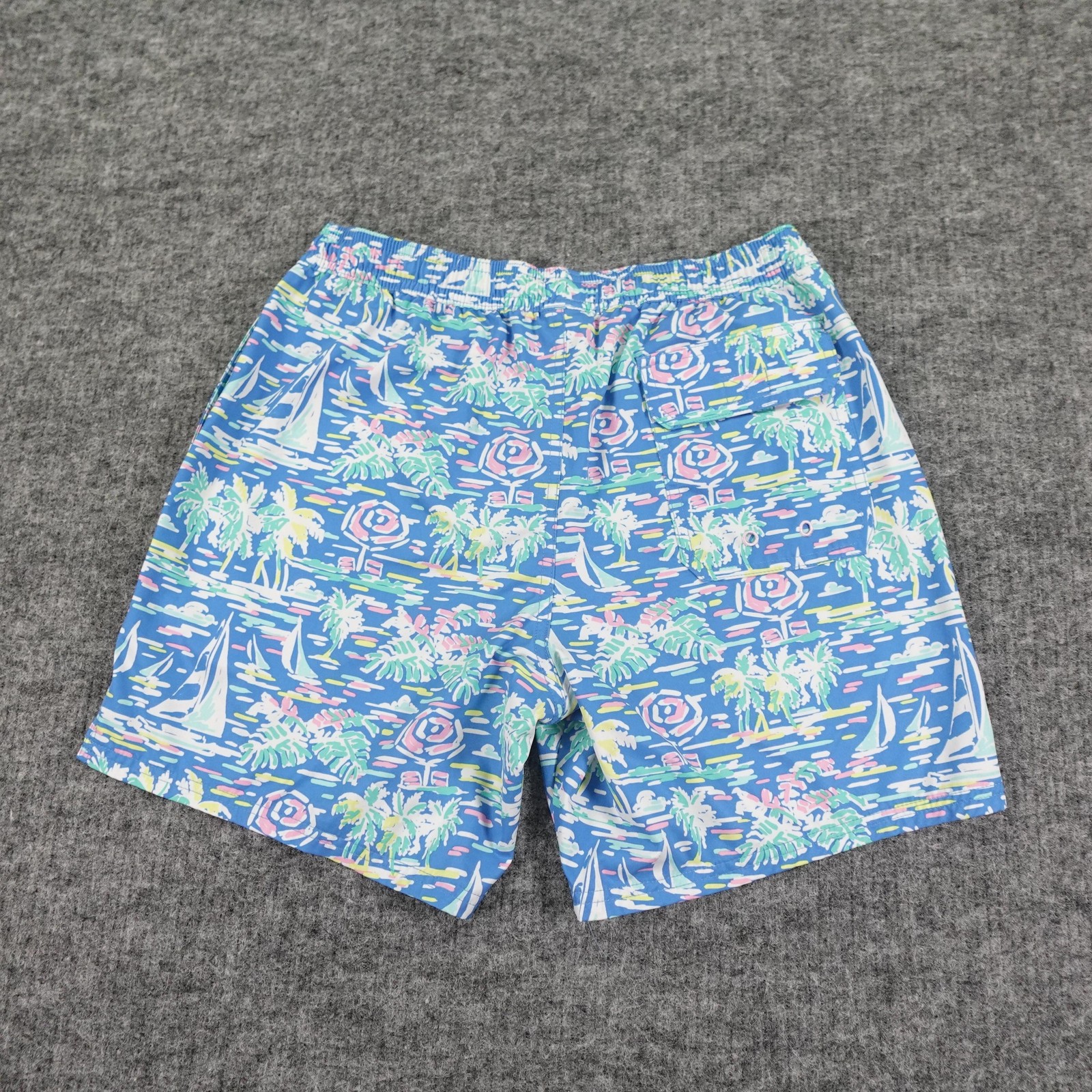 Vineyard Vines Shorts Mens Medium Blue Sailboat Palm Swim Trunks Bathing Suit