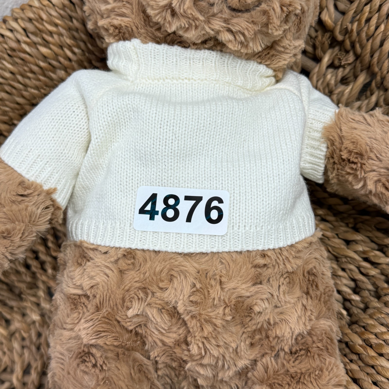 как выглядит POTTERY BARN KIDS CLASSIC PLUSH TEDDY BEAR WITH SWEATER BROWN / BEIGE фото