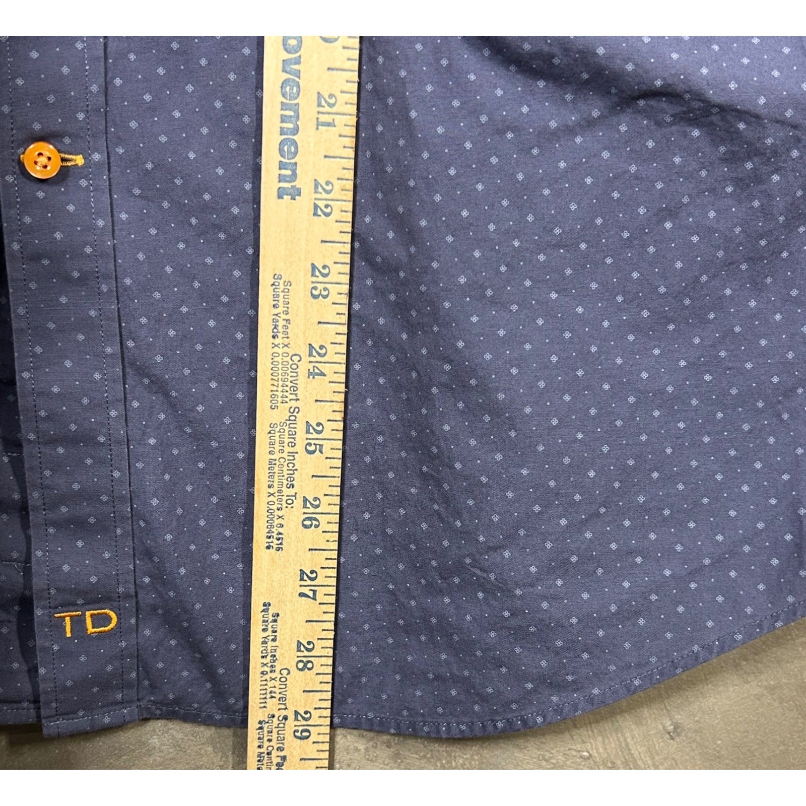 Thomas Dean Shirt Men's Large Long Sleeve Button Down Patterned Navy Blue