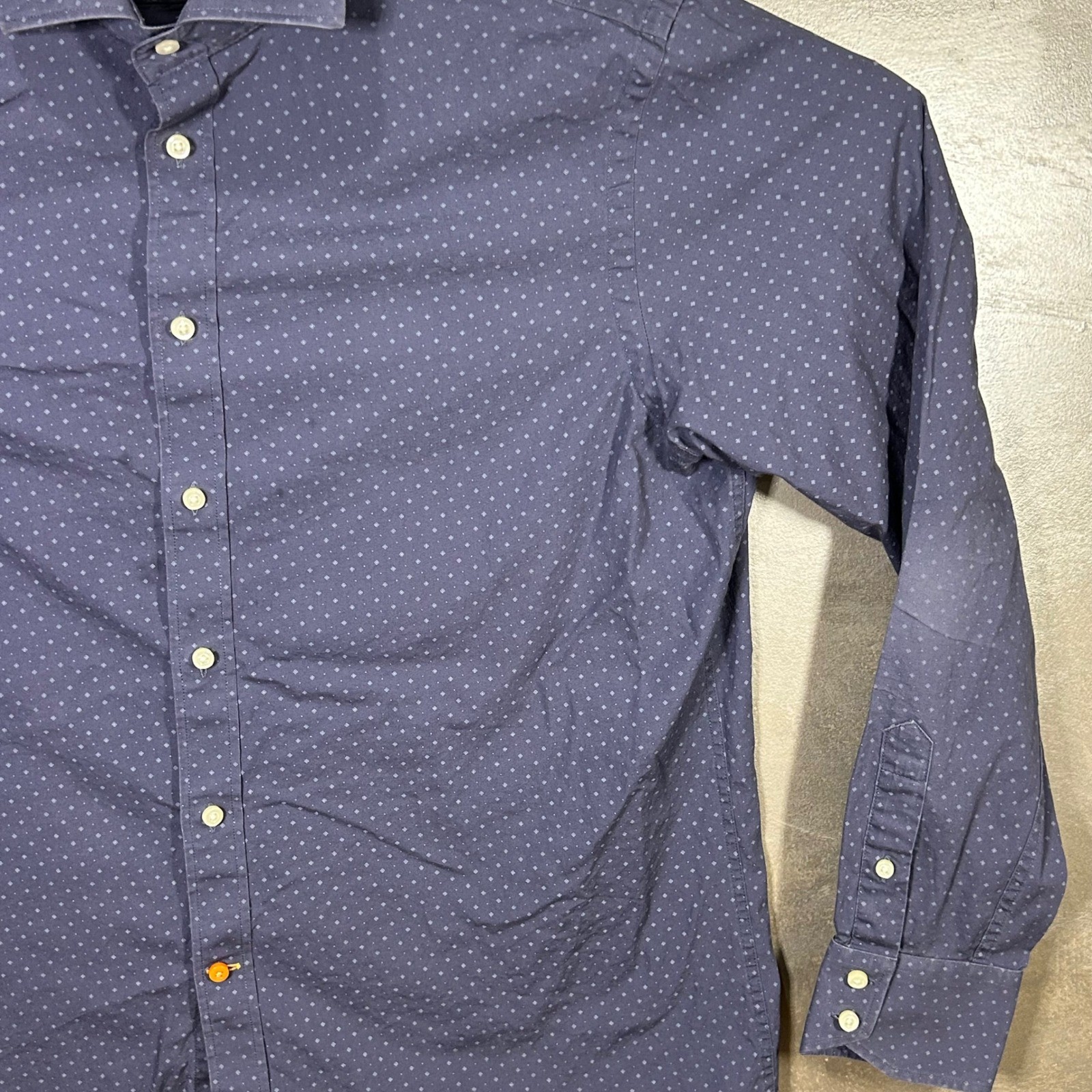 как выглядит Thomas Dean Shirt Mens Large Long Sleeve Button Down Patterned Navy Blue фото