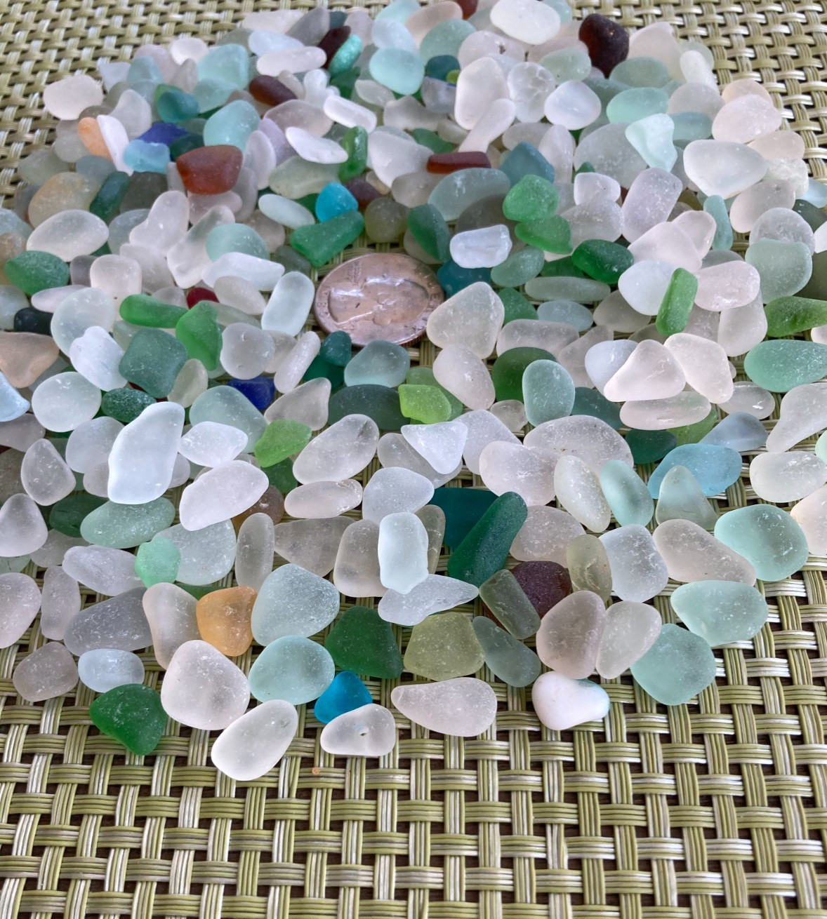 10 ounces of Genuine Pieces of Smooth and Rounded Surf Tumbled Sea Glass Pebbles