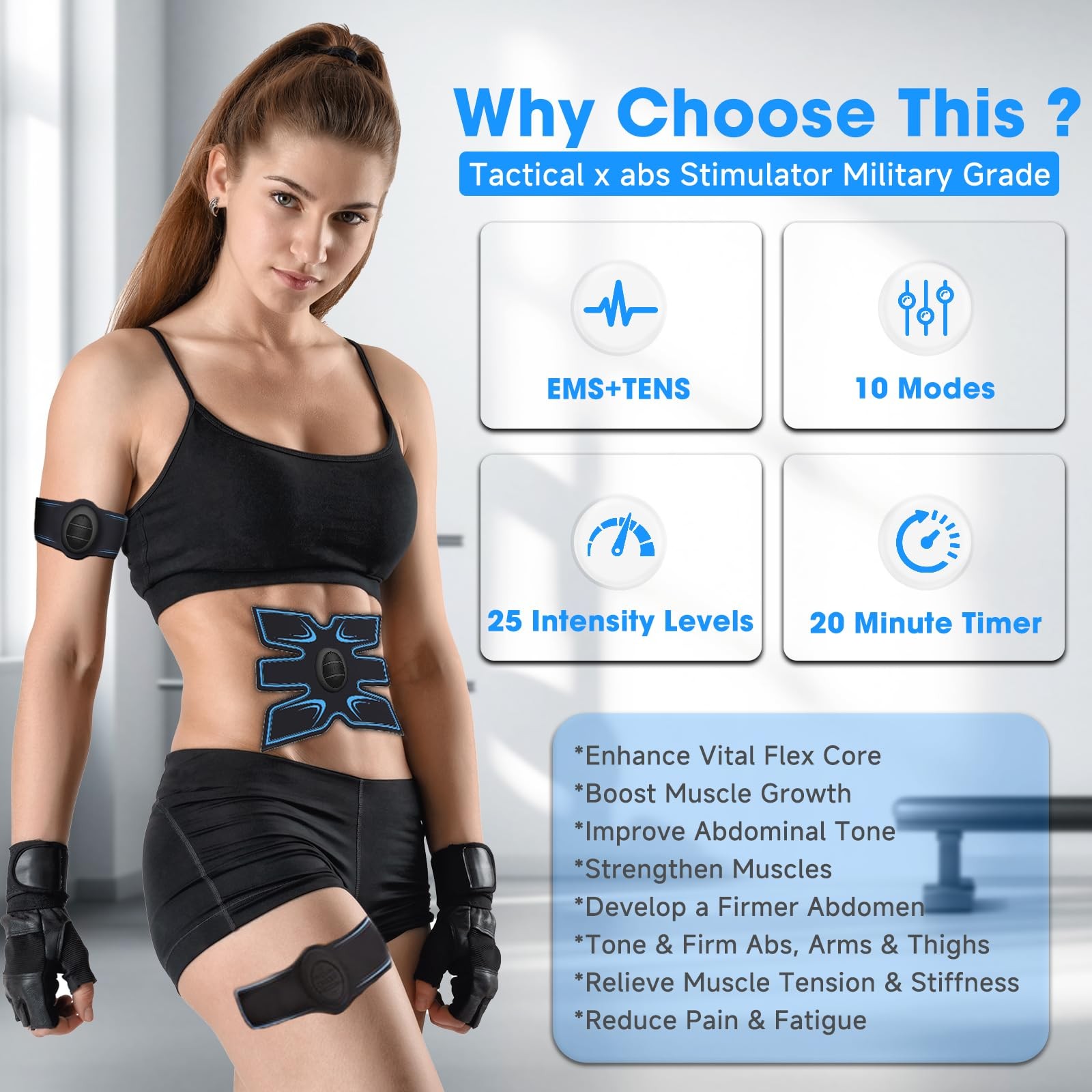 • FDA Cleared - EMS Ab Stimulator Muscle Toner Women Men, Tactical x abs Stimulato