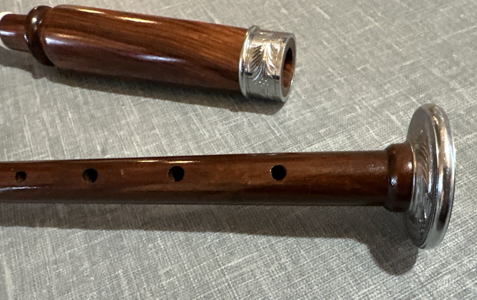 как выглядит Bagpipe Practice Chanters Rosewood with Silver Ornate Feather Decorations. фото