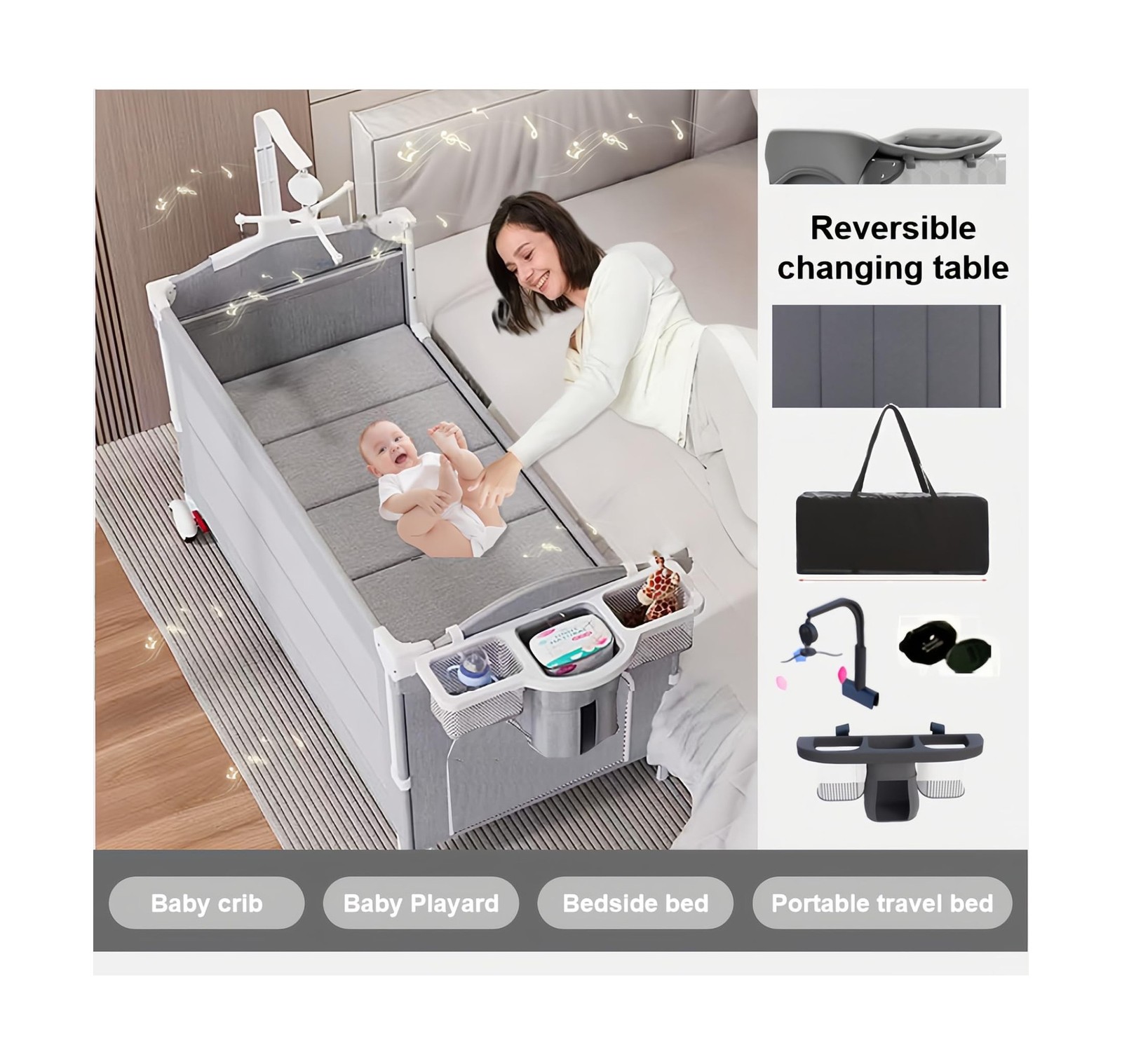 Pack and Play Baby Bedside Crib with Wheels, Foldable Baby Travel Crib for Ba...