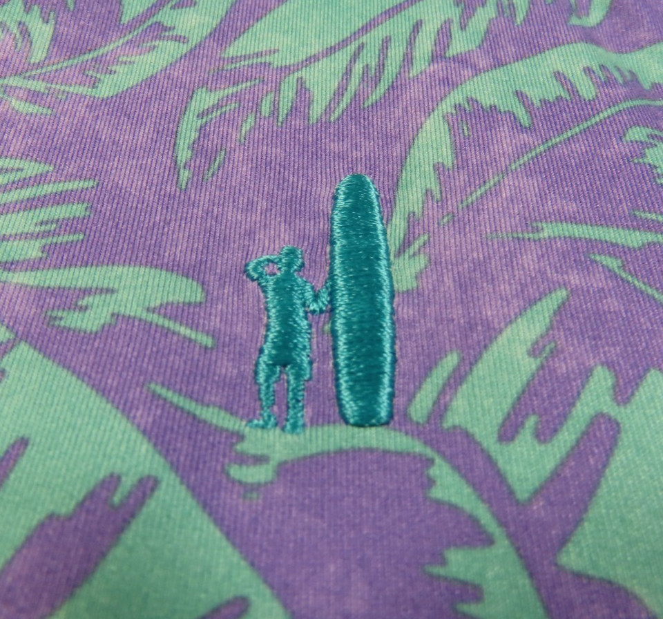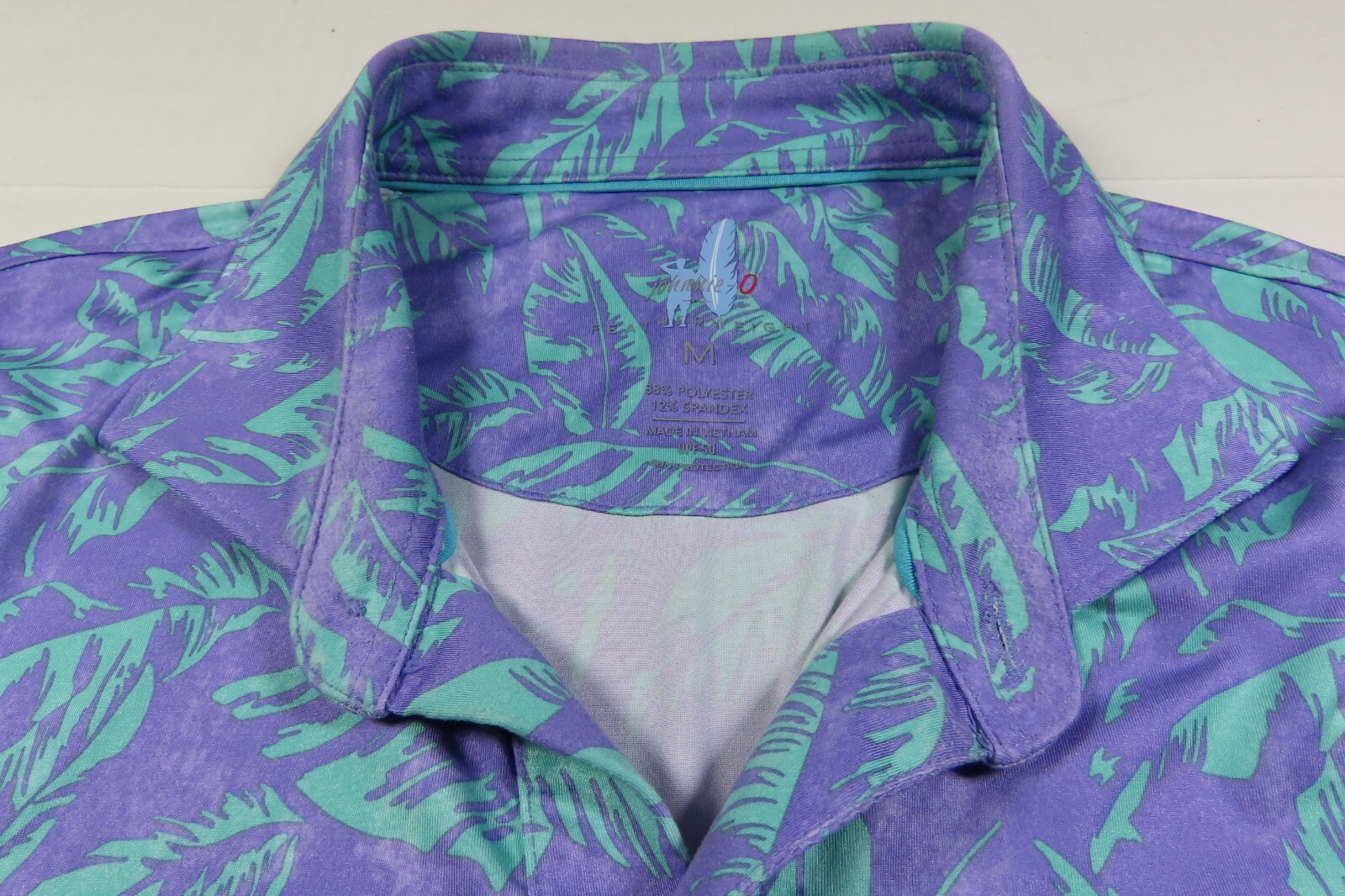 Johnnie-O Golf Mens Stretch Purple Teal Floral Leaves Pullover Polo Shirt Medium