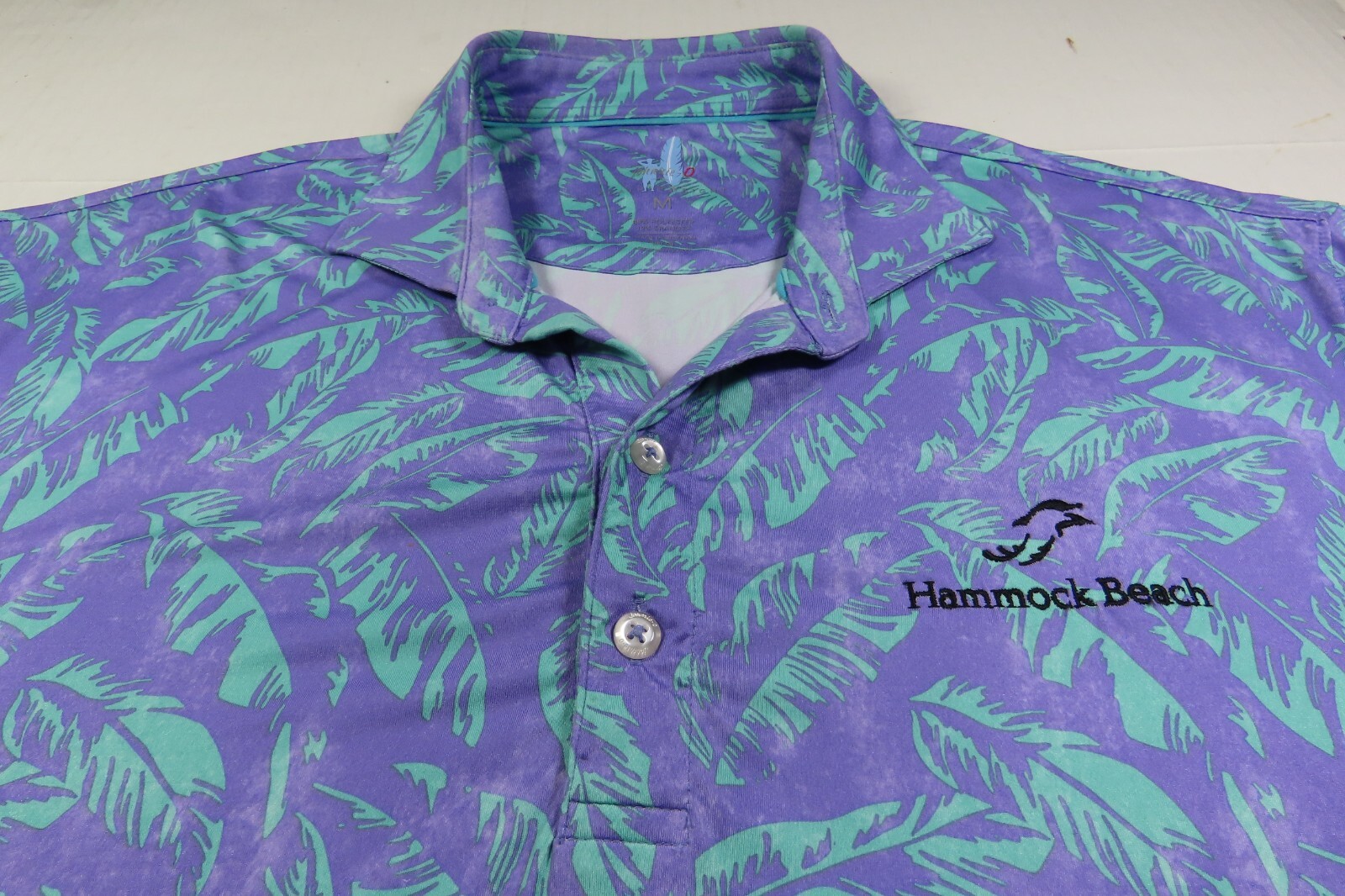 как выглядит Johnnie-O Golf Mens Stretch Purple Teal Floral Leaves Pullover Polo Shirt Medium фото