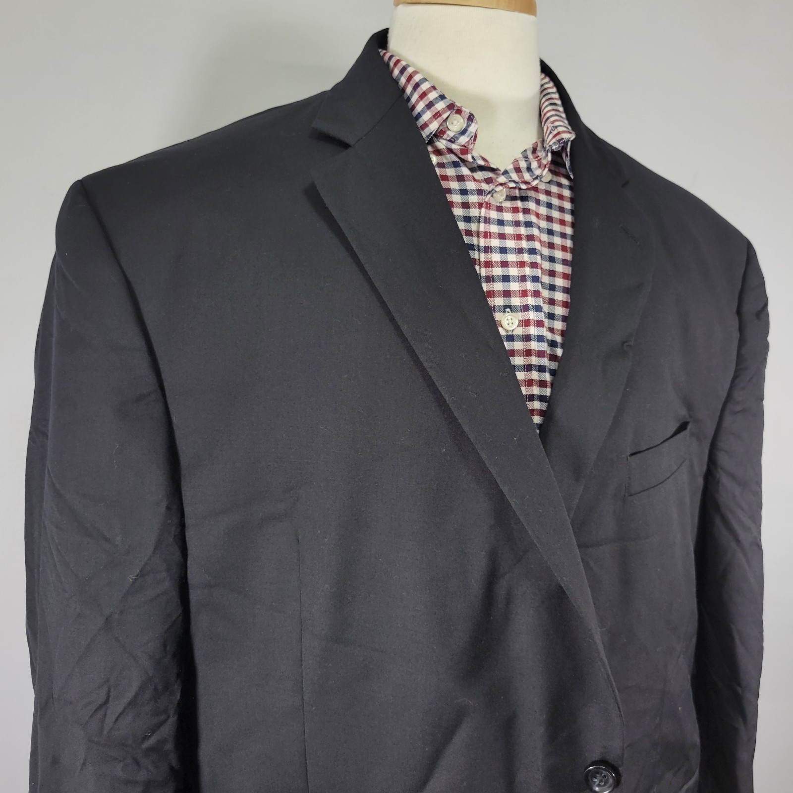 как выглядит Stafford Mens Sport Coat Blazer Two Button Solid Black Wool BIG TALL Size 54R фото