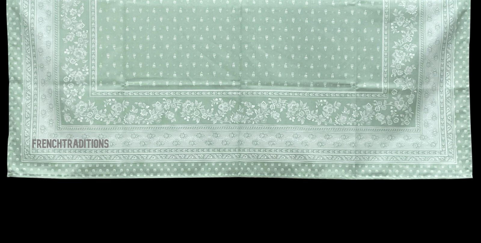 French Provencal Jacquard Tablecloth Flowers Sage Green 63X79 - Made in France