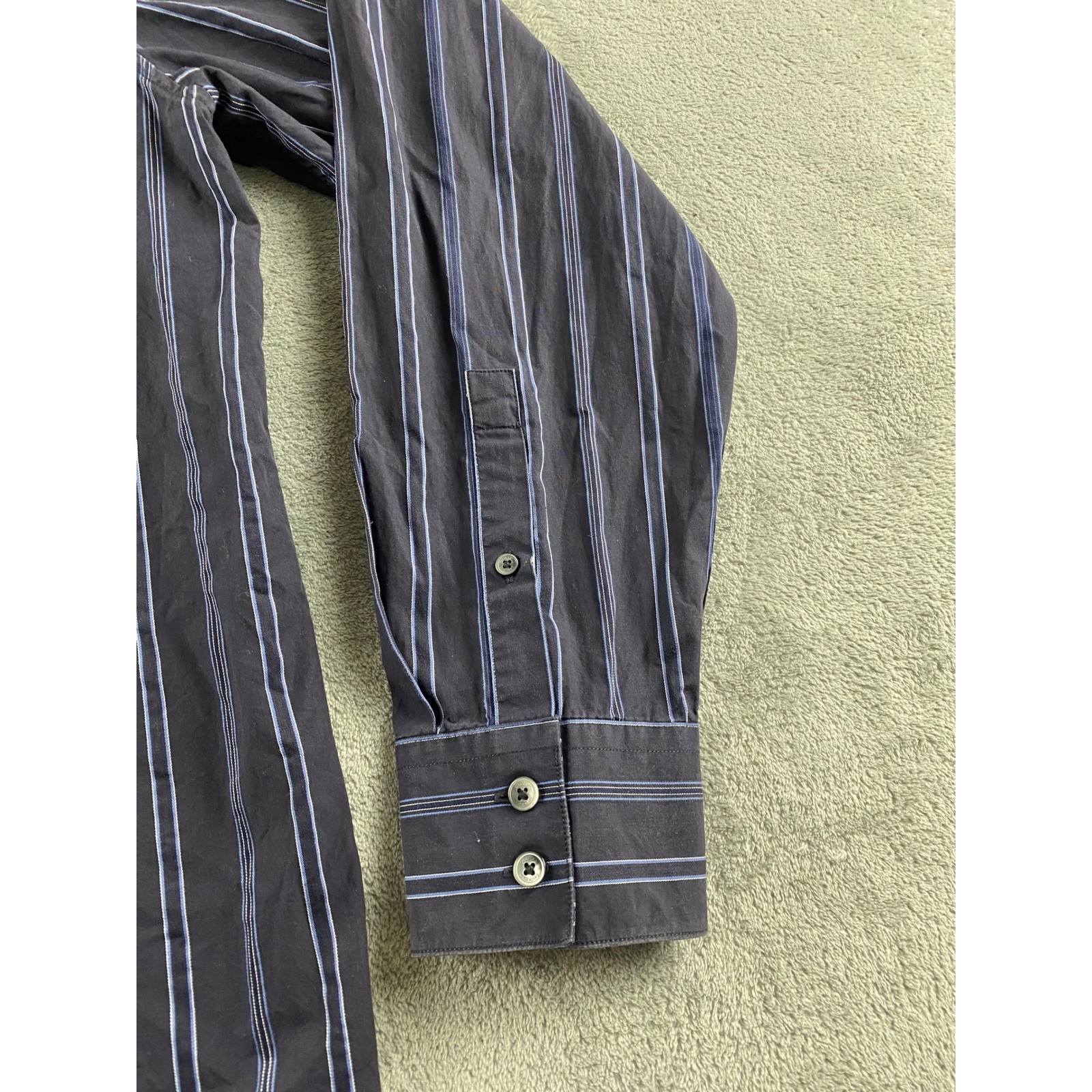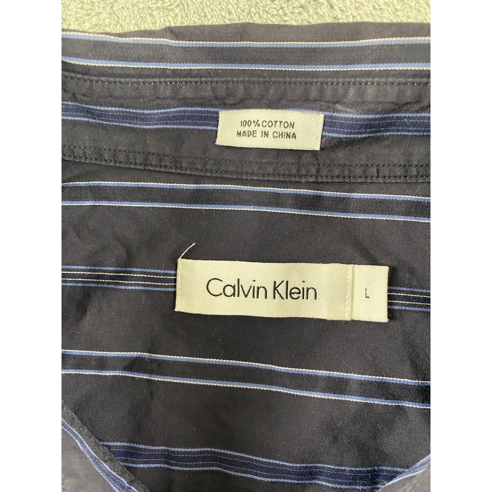 как выглядит Calvin Klein Mens Blue Striped Cotton Long Sleeve Button Down Shirt Size L фото