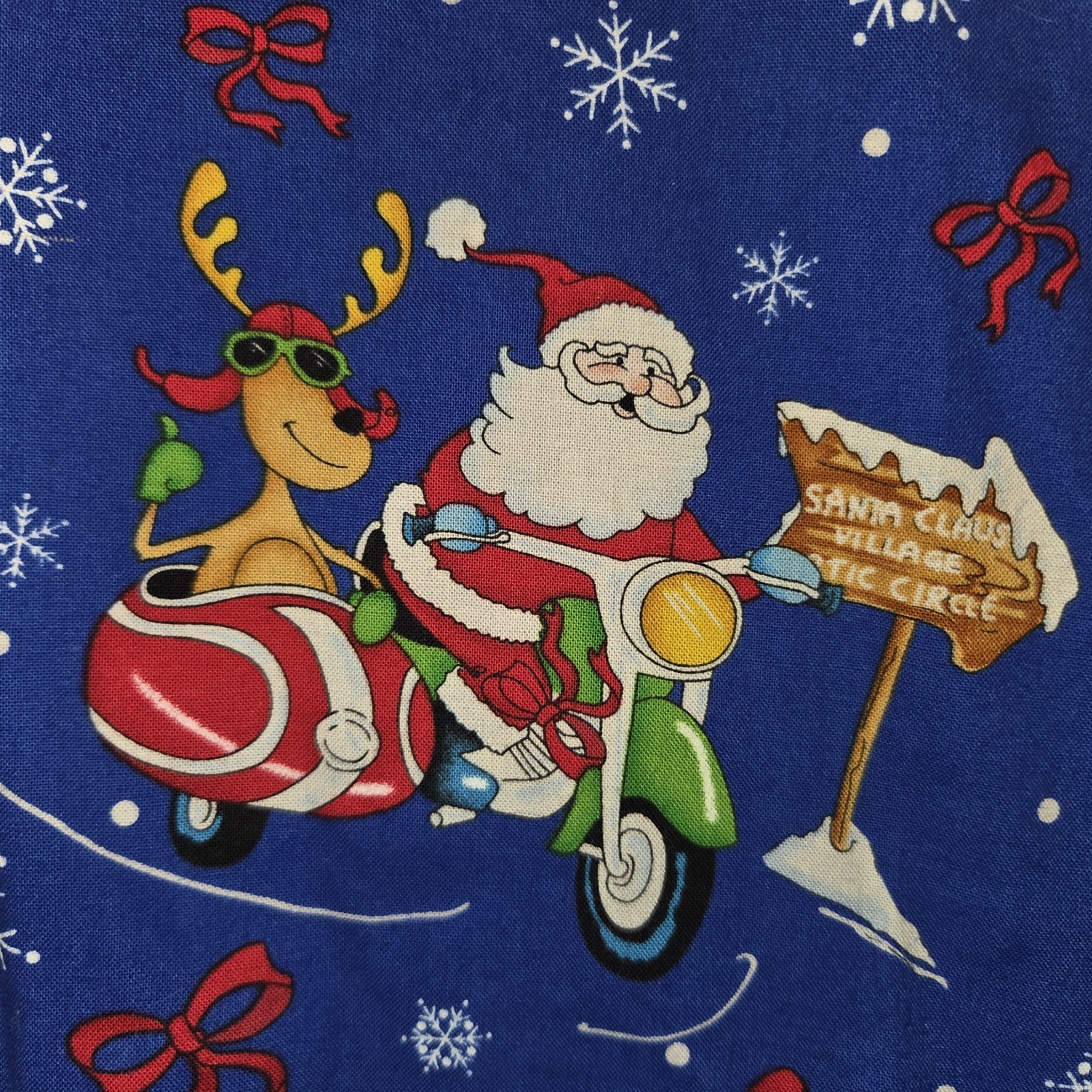 Peaches Womens 3XL Scrubs Top Blue Christmas Santa Motorcycle Print Medical Vet