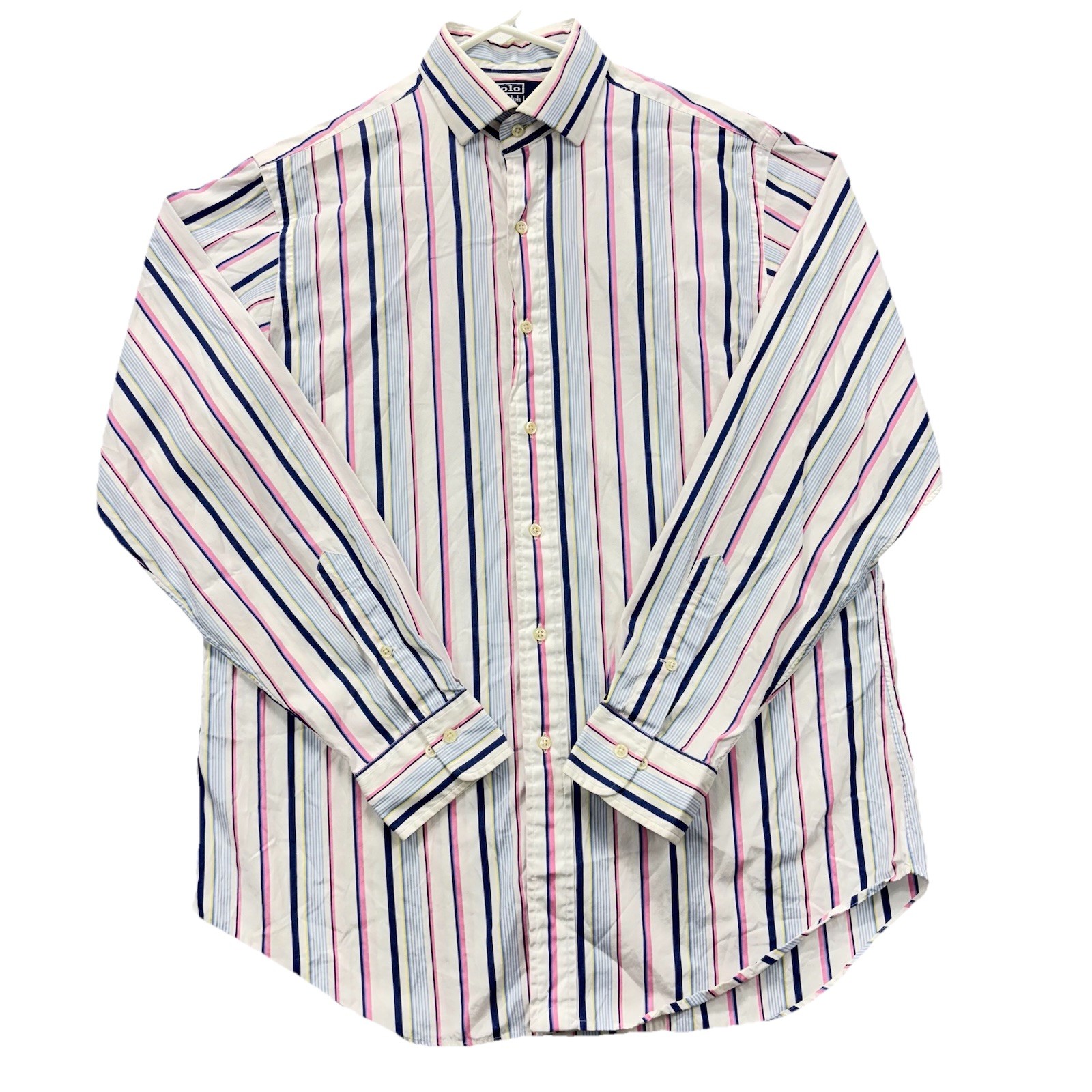 VTG polo Ralph Lauren shirt Mens L Regent classic fit button up pink Stripes