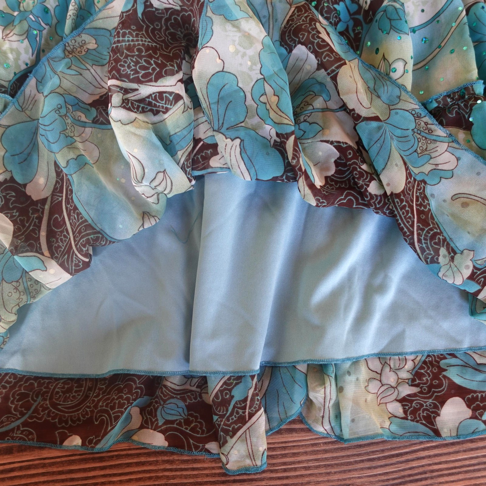 как выглядит Vintage Y2K Rampage Skirt 6 Blue Floral Tiered Silk Sequin Boho Fairy 2000s фото