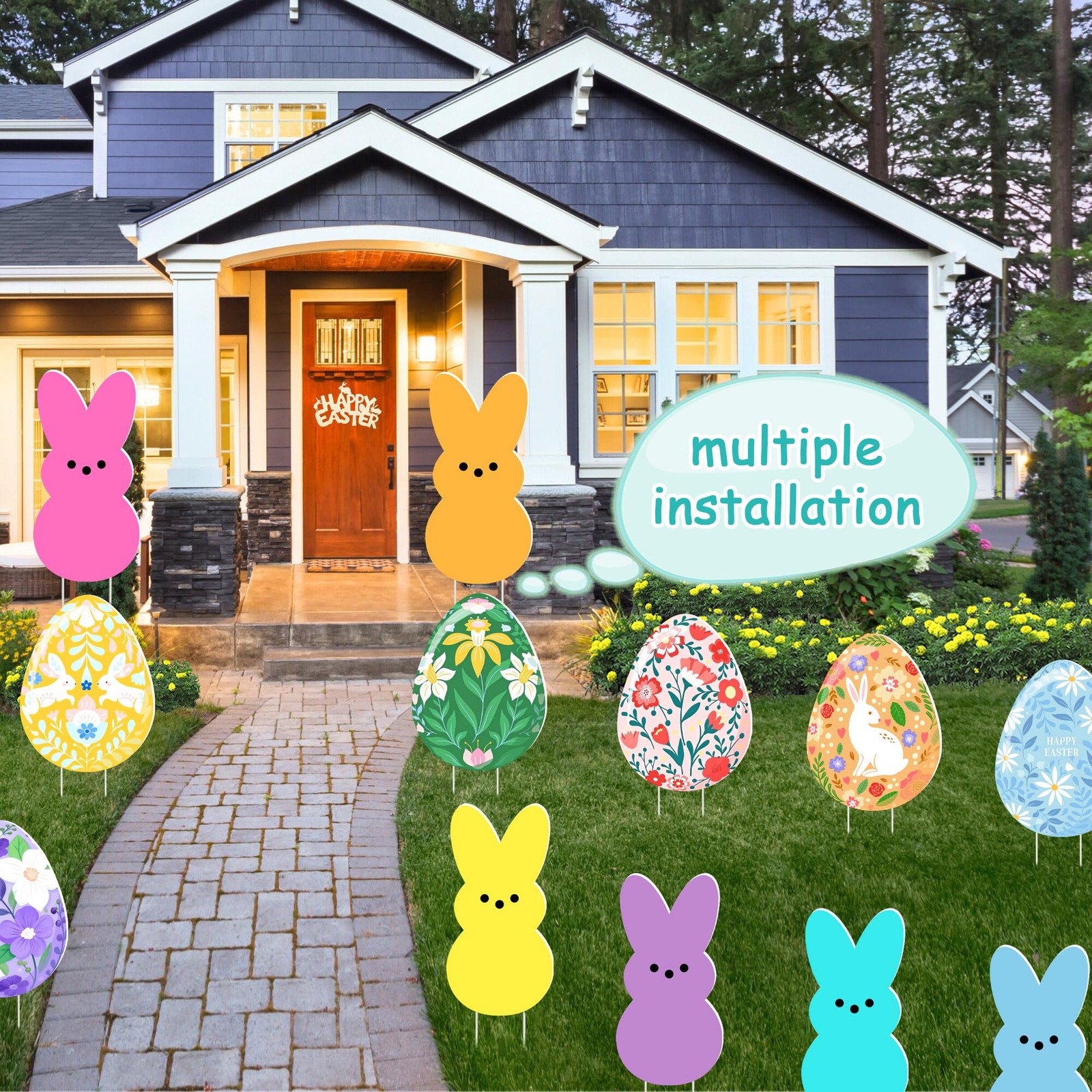 12 PCS Easter Yard Signs Decorations Outdoor - Colorful Floral Easter Bunny E...