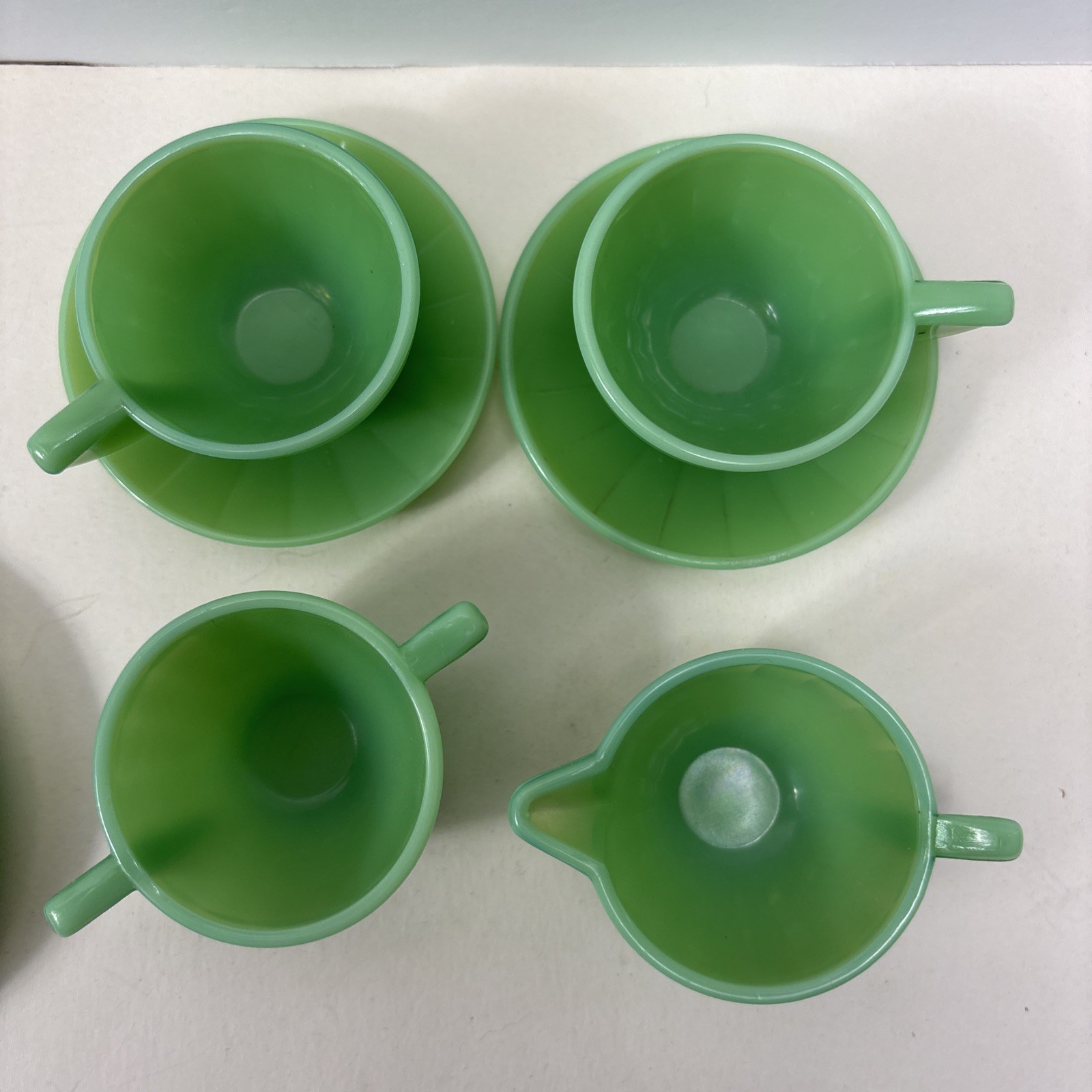 как выглядит Vtg Akro Agate Child s Tea Set 10 Pcs Green Jadeite фото