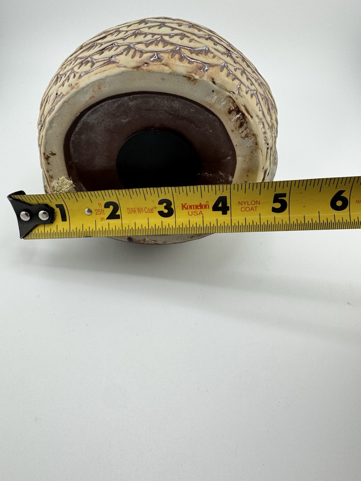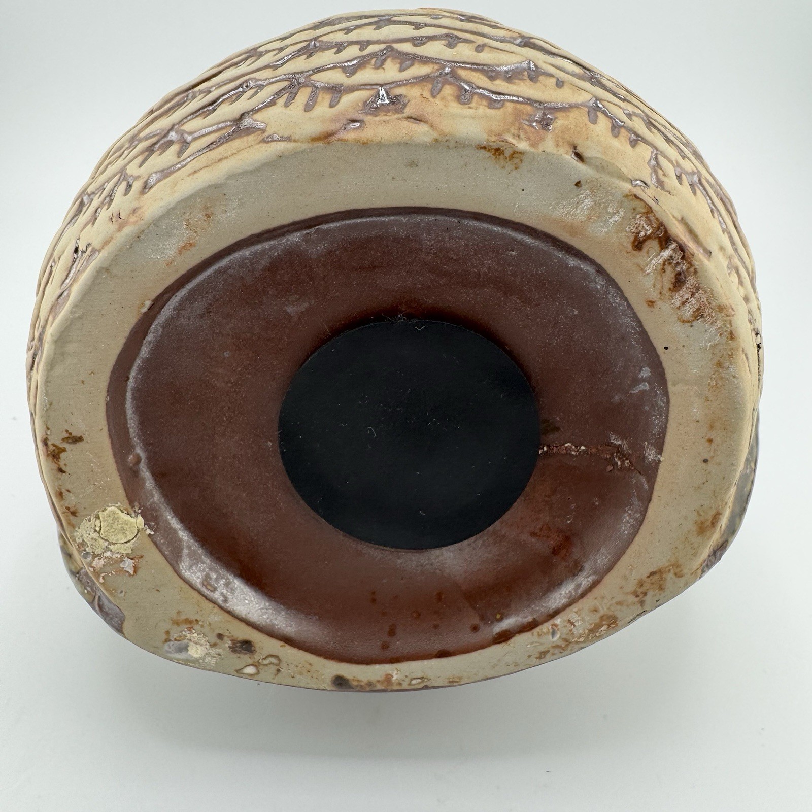 • Vintage Ceramic Owl Coin Bank Green Brown Glaze Feather Texture 7