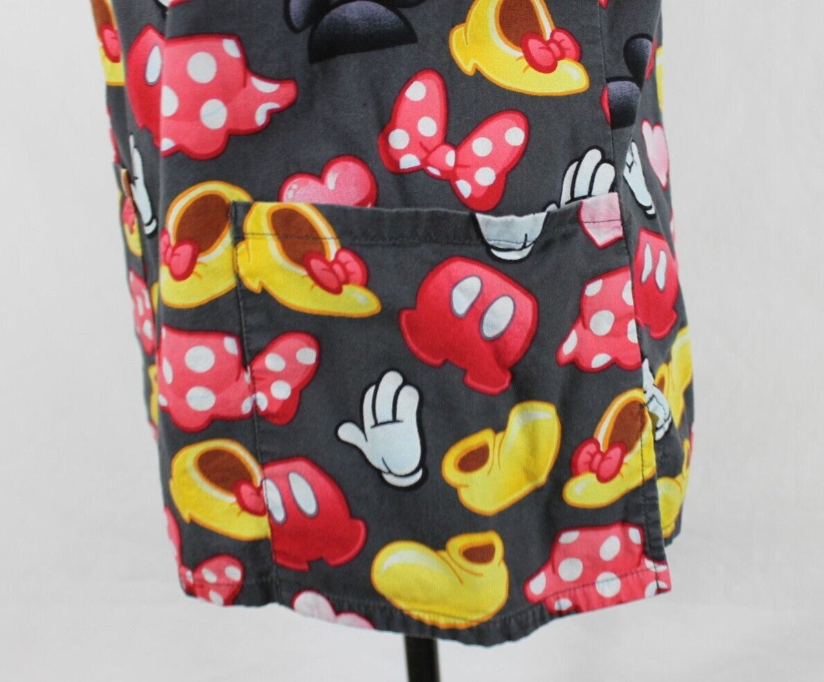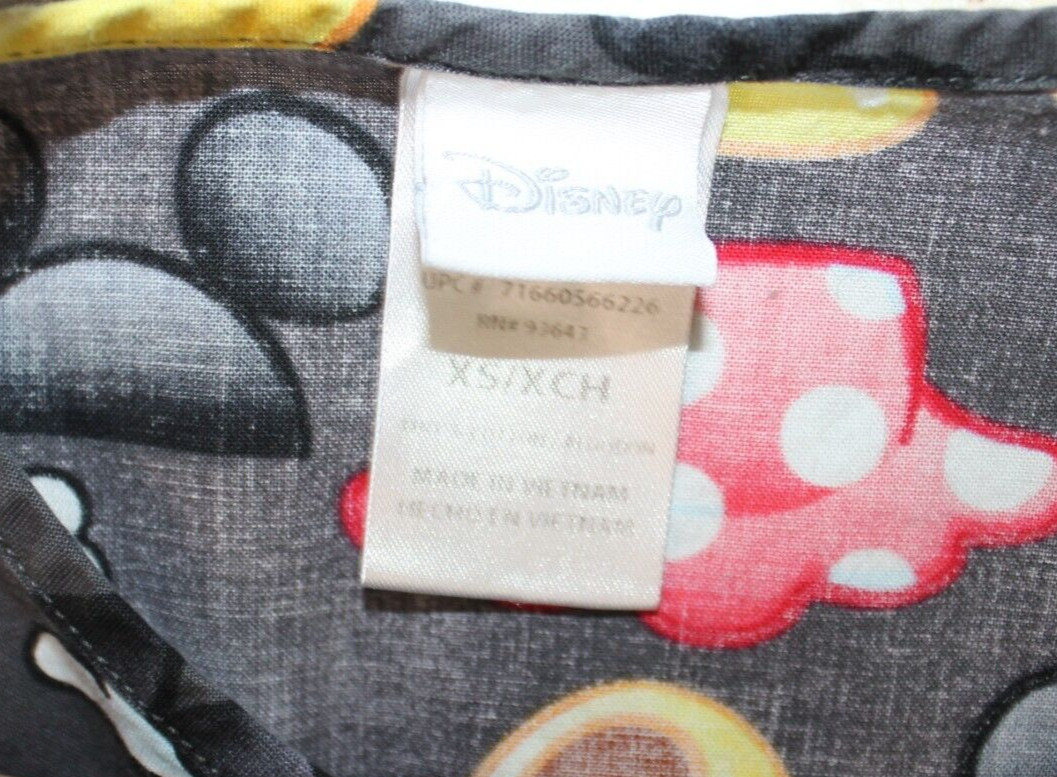 DISNEY Minnie Mouse Scrub Top Woman Size XS Cotton Dark Gray Hearts Pockets Ears