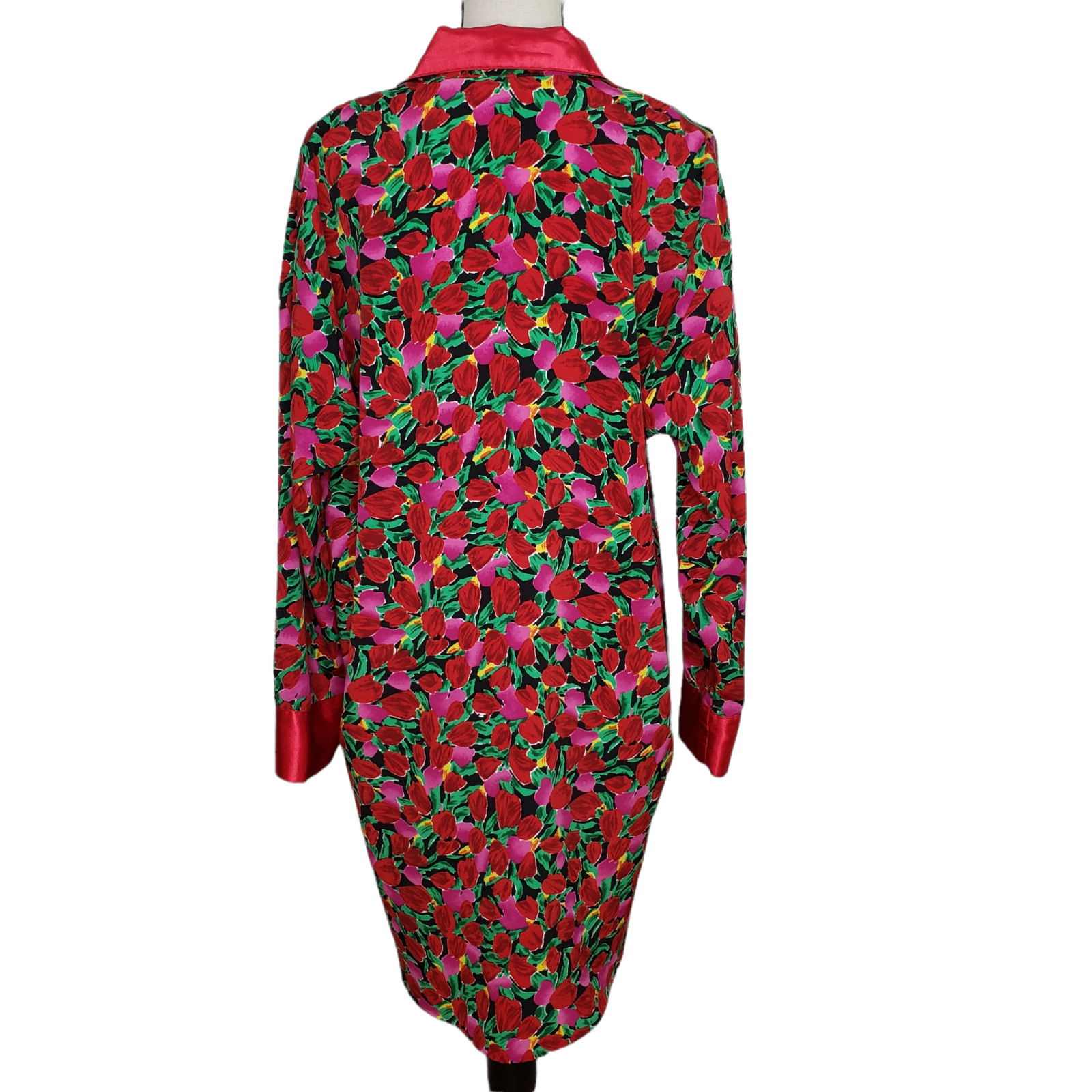 Victoria's Secret Medium Night Shirt Red Pink Floral Sleep Vintage Gold Label