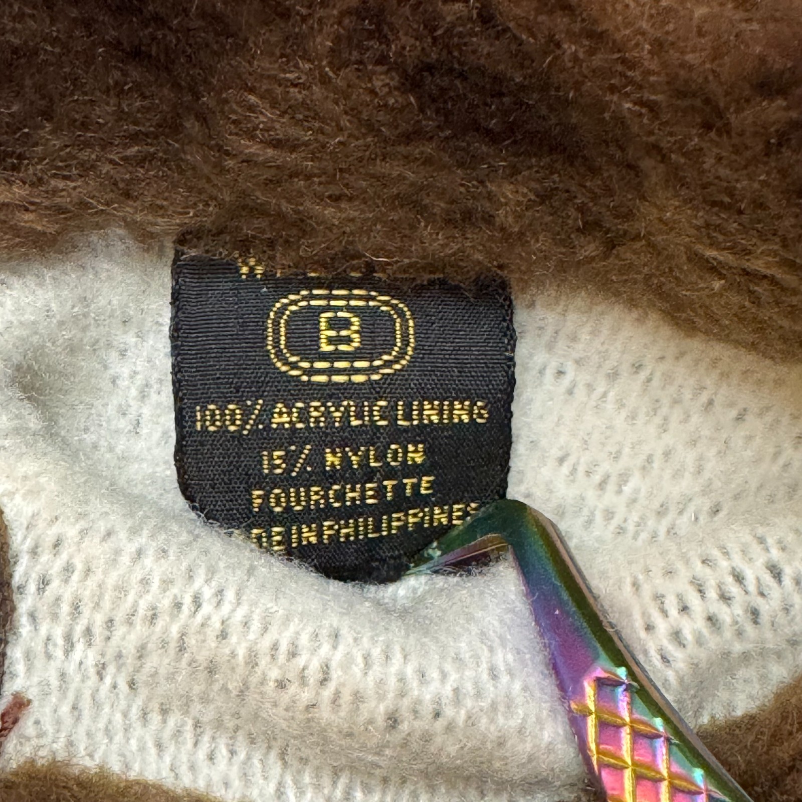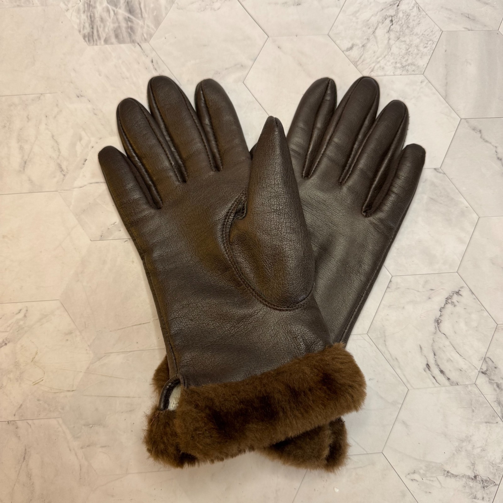 Vintage Fownes Brown Leather Womens Size 8 Lined Gloves Faux Fur Trim EUC