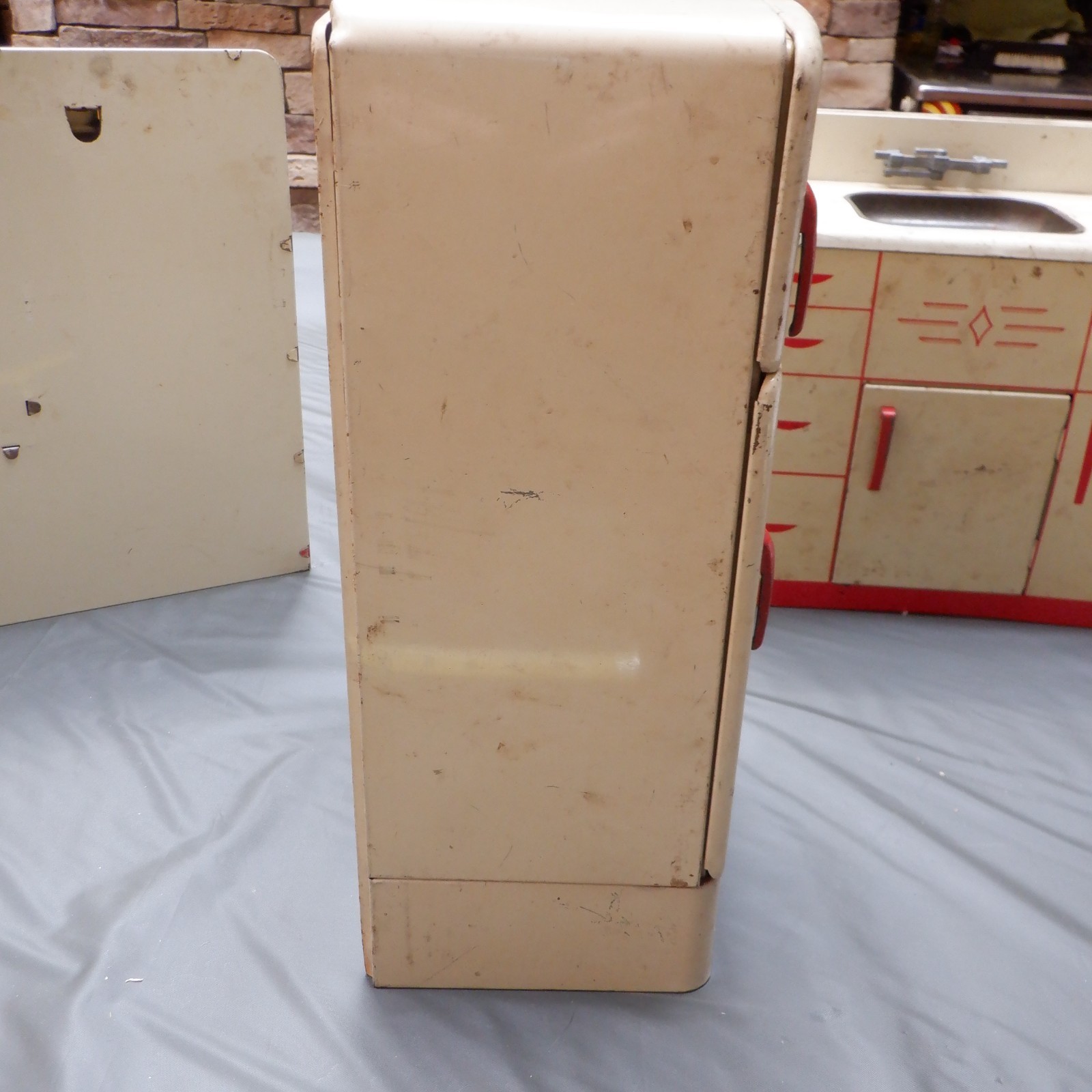 Vintage Wolverine Supply Mfg Co Tin Toy Child's Kitchen Set Sink Fridge Stove
