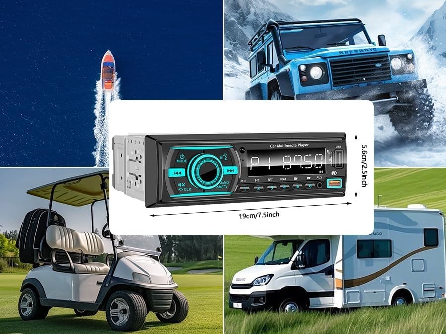 • Marine Radio Single DIN Bluetooth Car Stereo, Boat Stereo Receiver Marine Head U